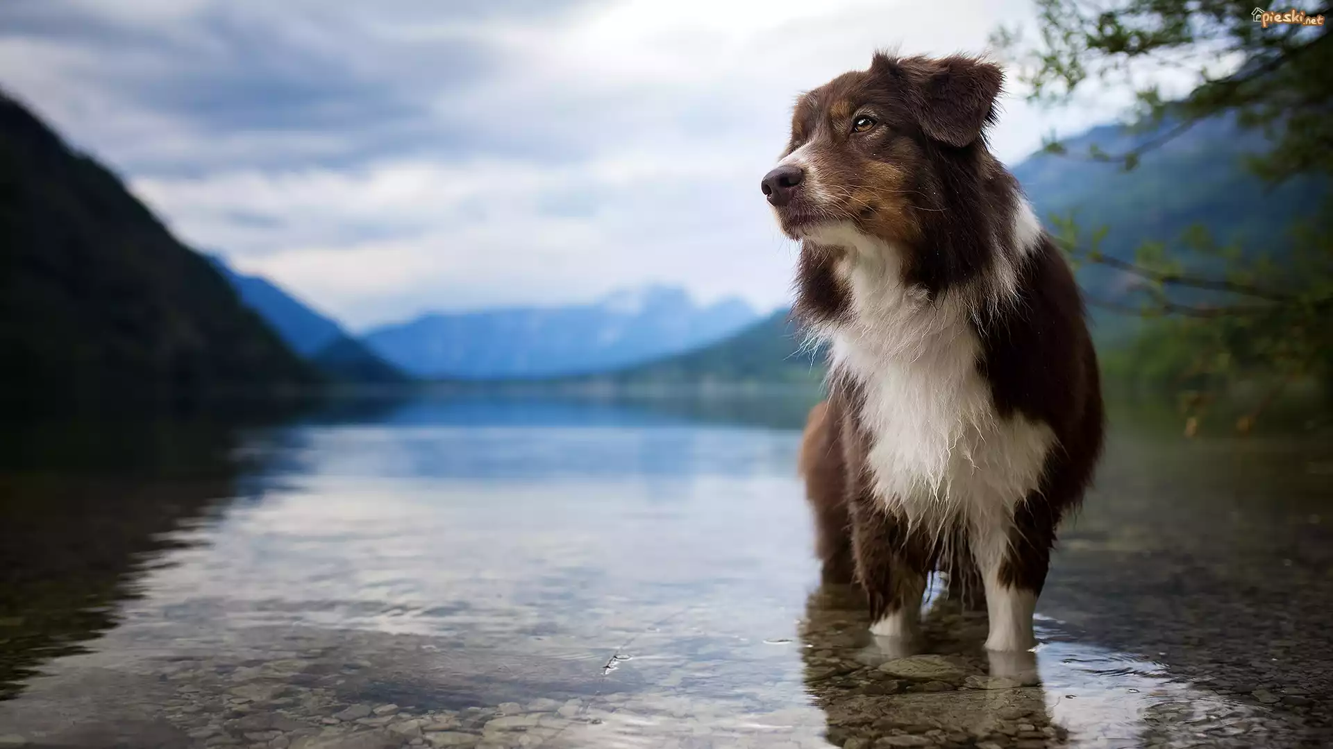 Pies Pies, Owczarek australijski, Zanurzone, Łapy, Jezioro