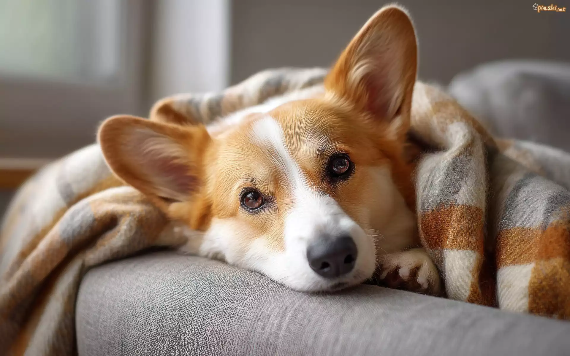 Pies Pies, Welsh corgi pembroke, Głowa, Koc, Grafika AI