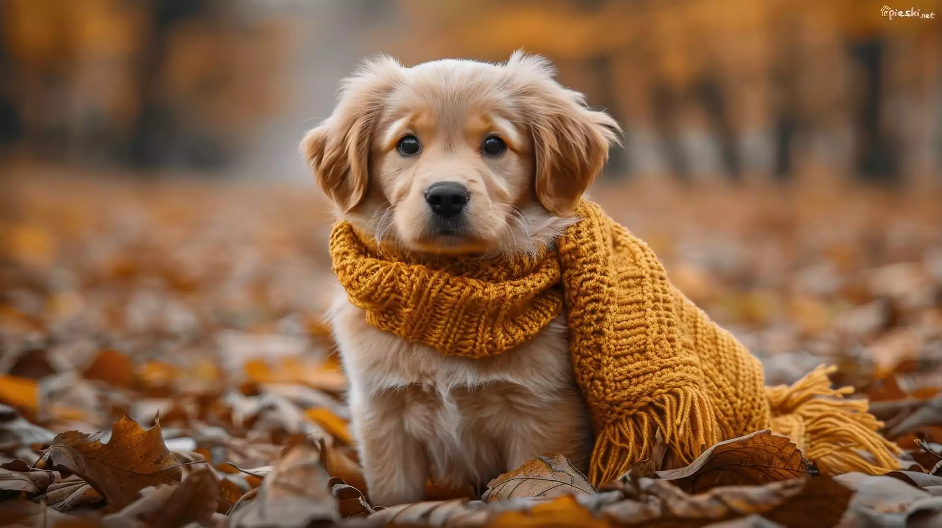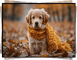 Pies Pies, Szczeniak, Golden retriever, Szalik, Wełniany, Liście, AI