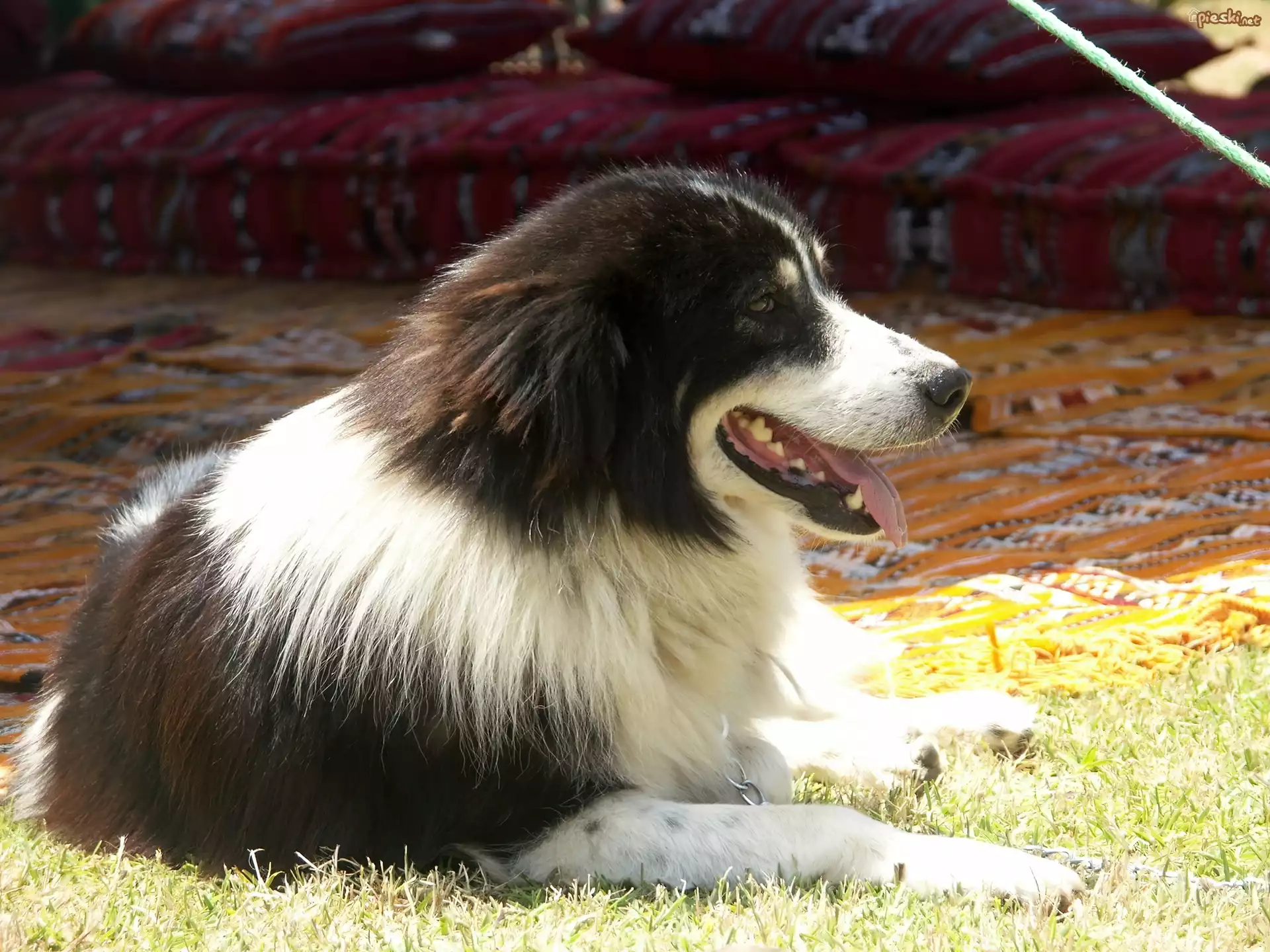 Pies, Golden, Retriever, Kwiatki Pies, Border collie, Mordka, nieg, Rozmyte, To Border collie, cieka, Trawa, Roliny Rudo-biay, Pies Seter irlandzki czerwono-biay, ka Szczeniak, Kundelek, Czerwona, Obroa Szczeniak, ancuszek, Legowisko Pies, Owczarek, Pieczka Lecy, Rottweiler, Szczeniak
