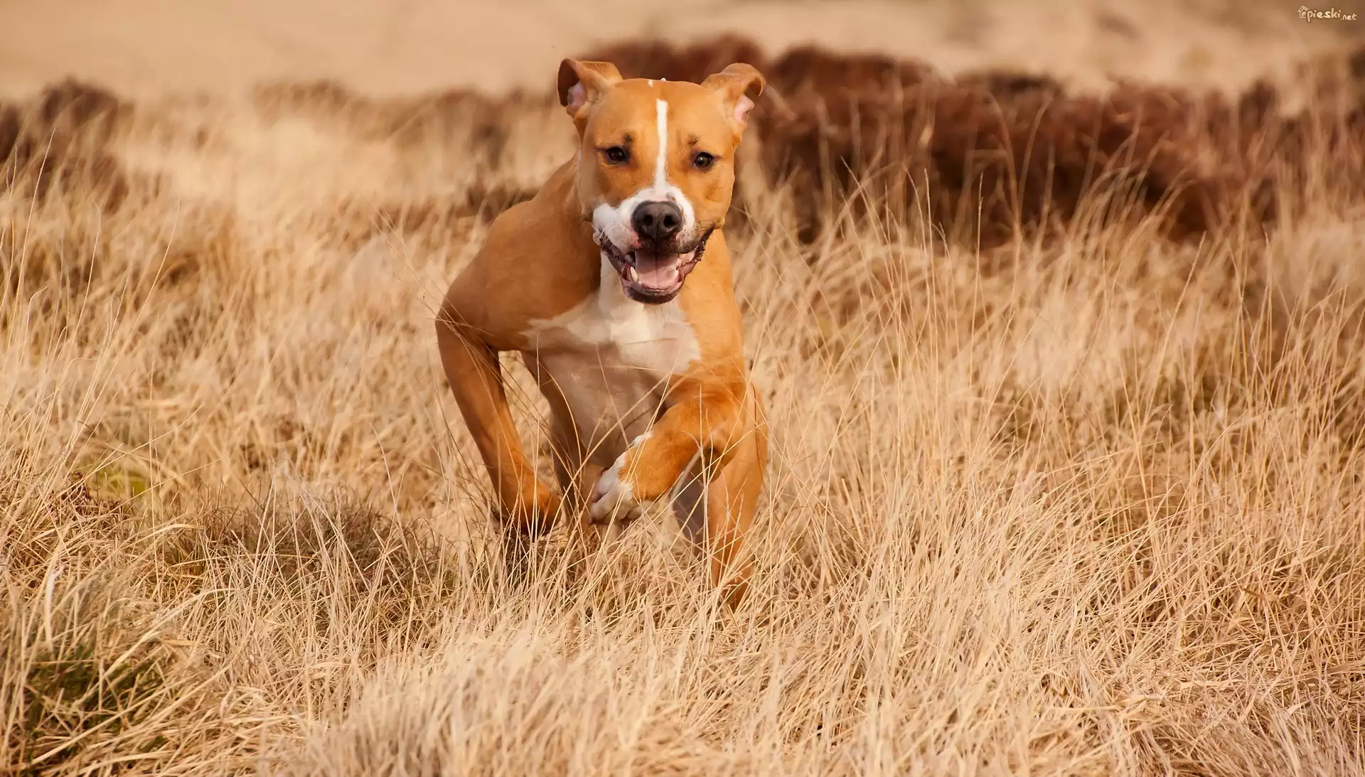 Biegnący, Amstaff, Trawa