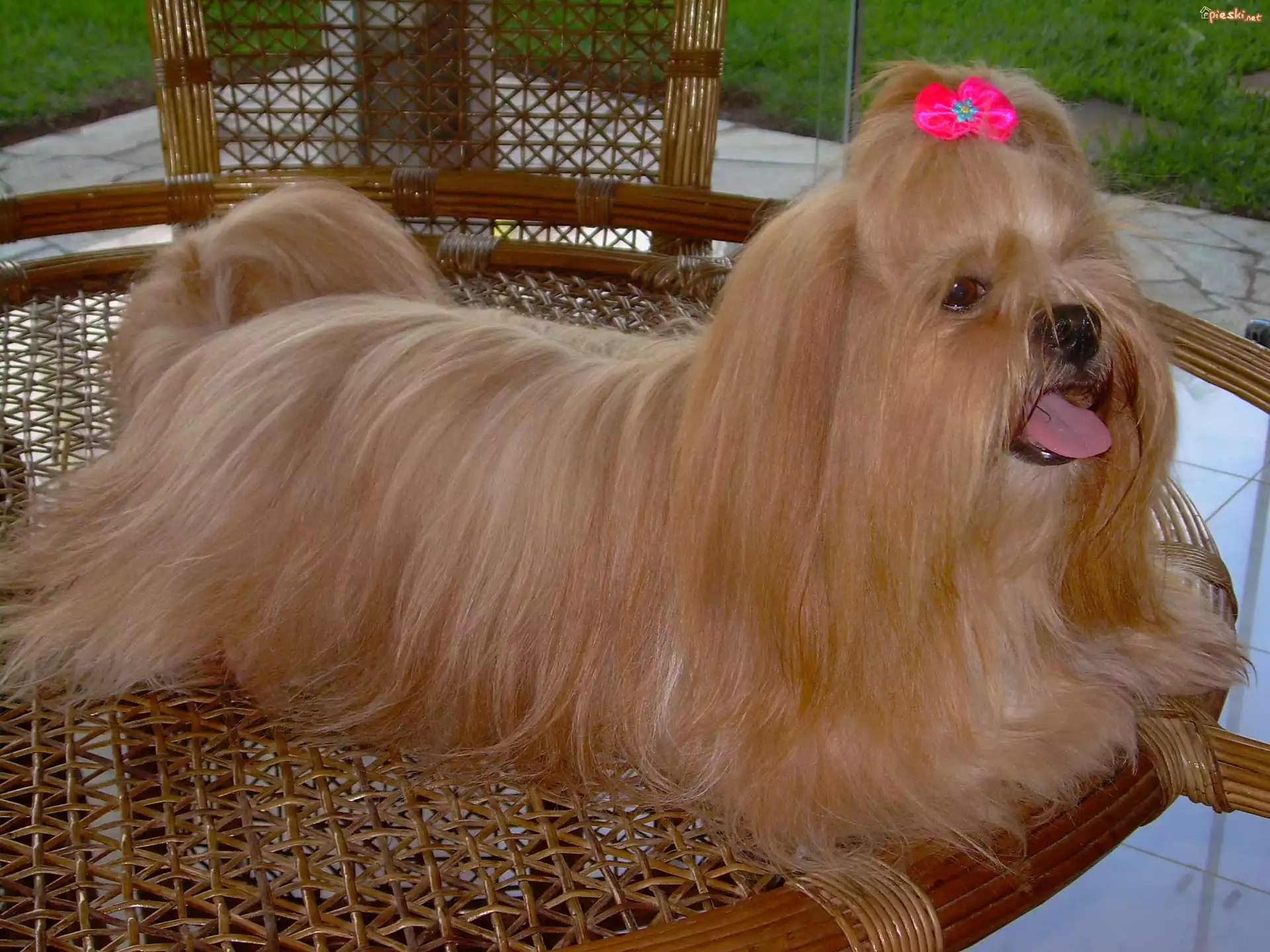 wyczesany, Lhasa Apso Lana Del Rey, Pies, Lhasa Apso Lhasa Apso Różowa, Gerbera, Pies, Lhasa Apso Lhasa Apso, kucyk Biało, Czarny, Lhasa Apso Lhasa Apso, kokardka Malutki piesek, Lhasa Apso