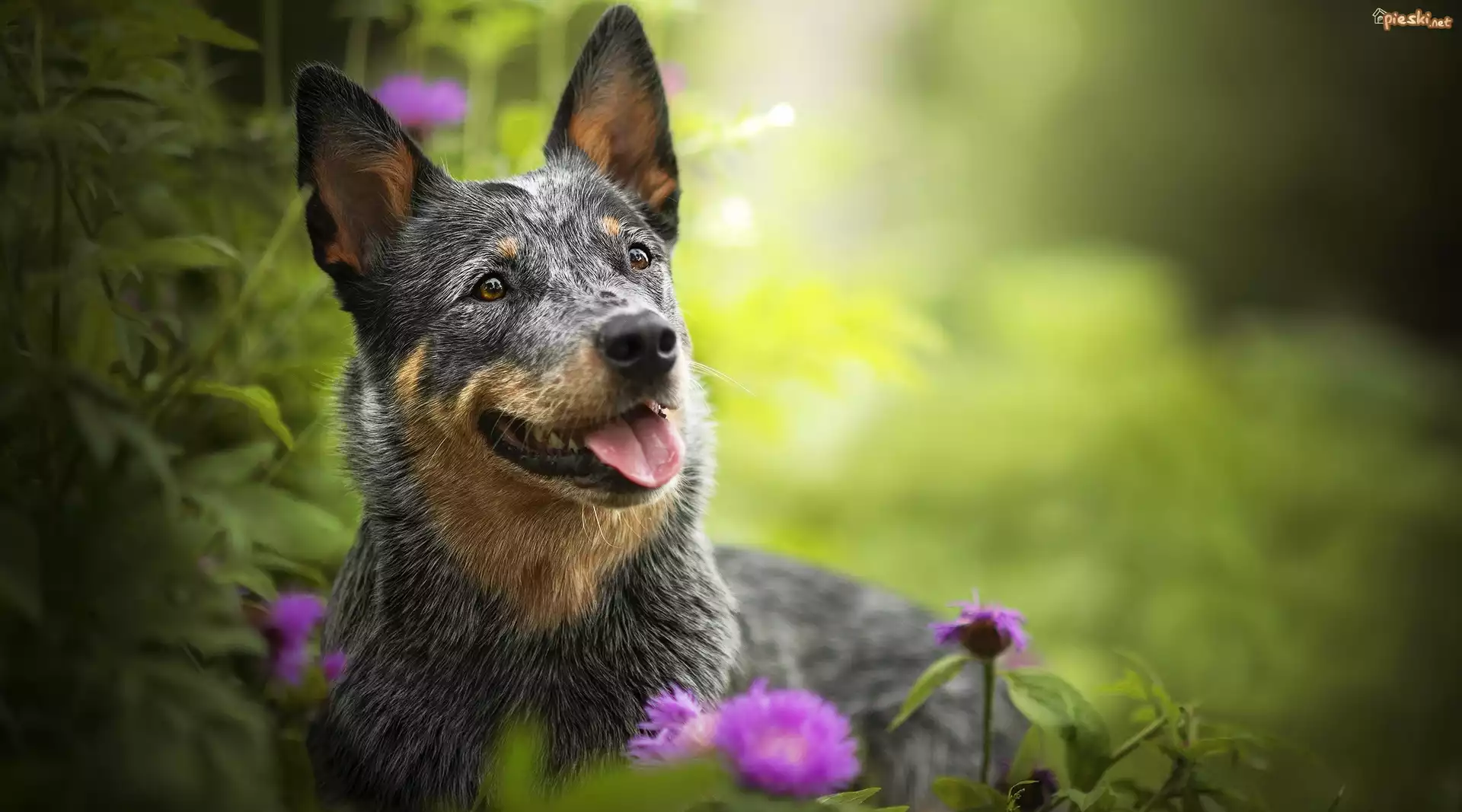 Pies Pies, Australian cattle dog, Mordka, Kwiaty, Rośliny