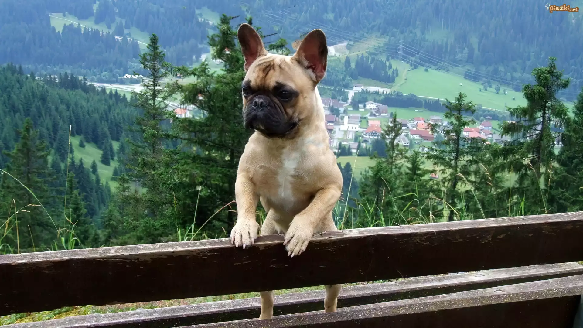 Pies Piesek, Ławka, Krajobraz