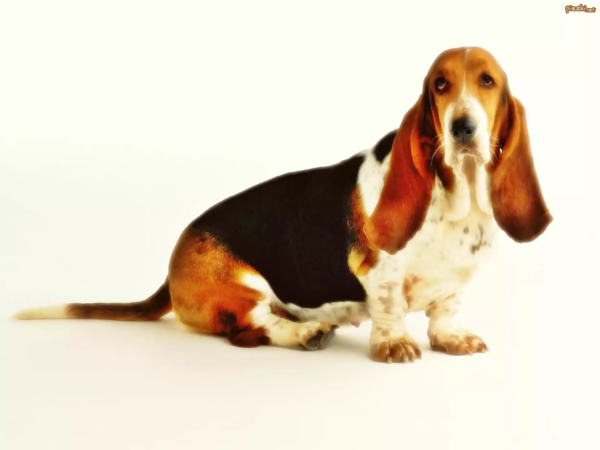 smutne, oczy, Basset Hound, antyk Basset Hound, Obroża Basset, Lizak, Czapeczka Wielkie, Uszy, Basset Trzy, Łaciate, Bassety Kot, Pies, Kumple Kotek, Basset Psy, Bassety, Małżeństwo