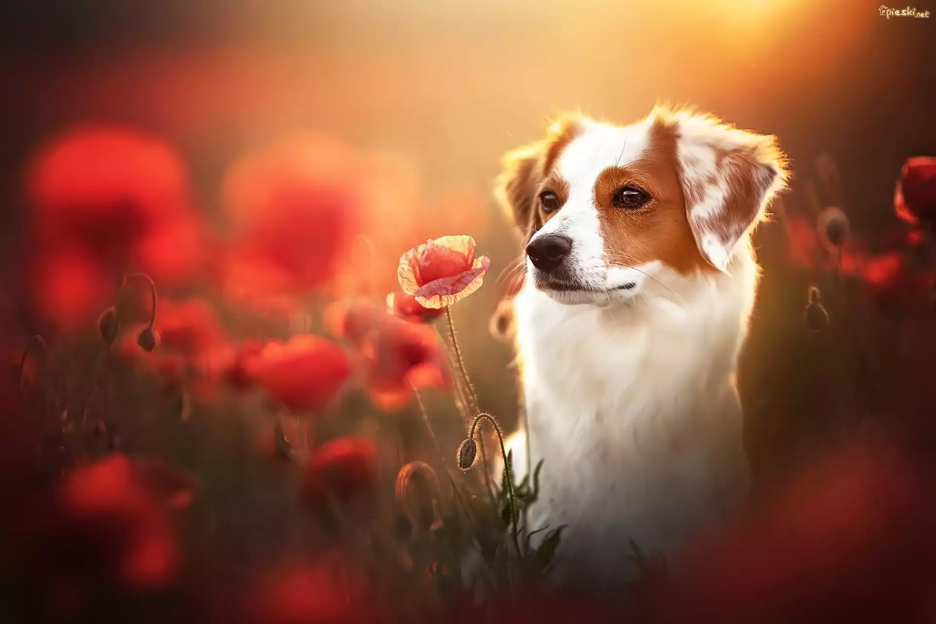 Pies Biało-brązowy, Pies, Maki, Rozmycie