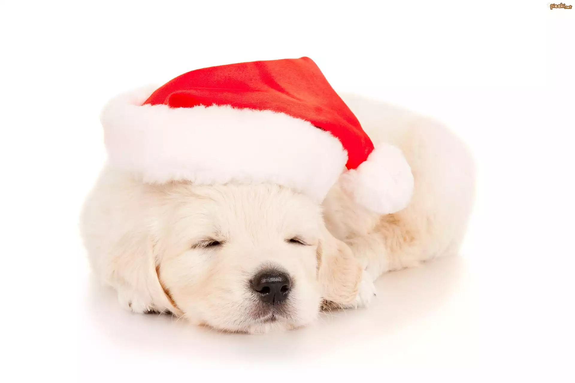 Szczeniaczek, Golden retriever, Czapka, Mikołaja