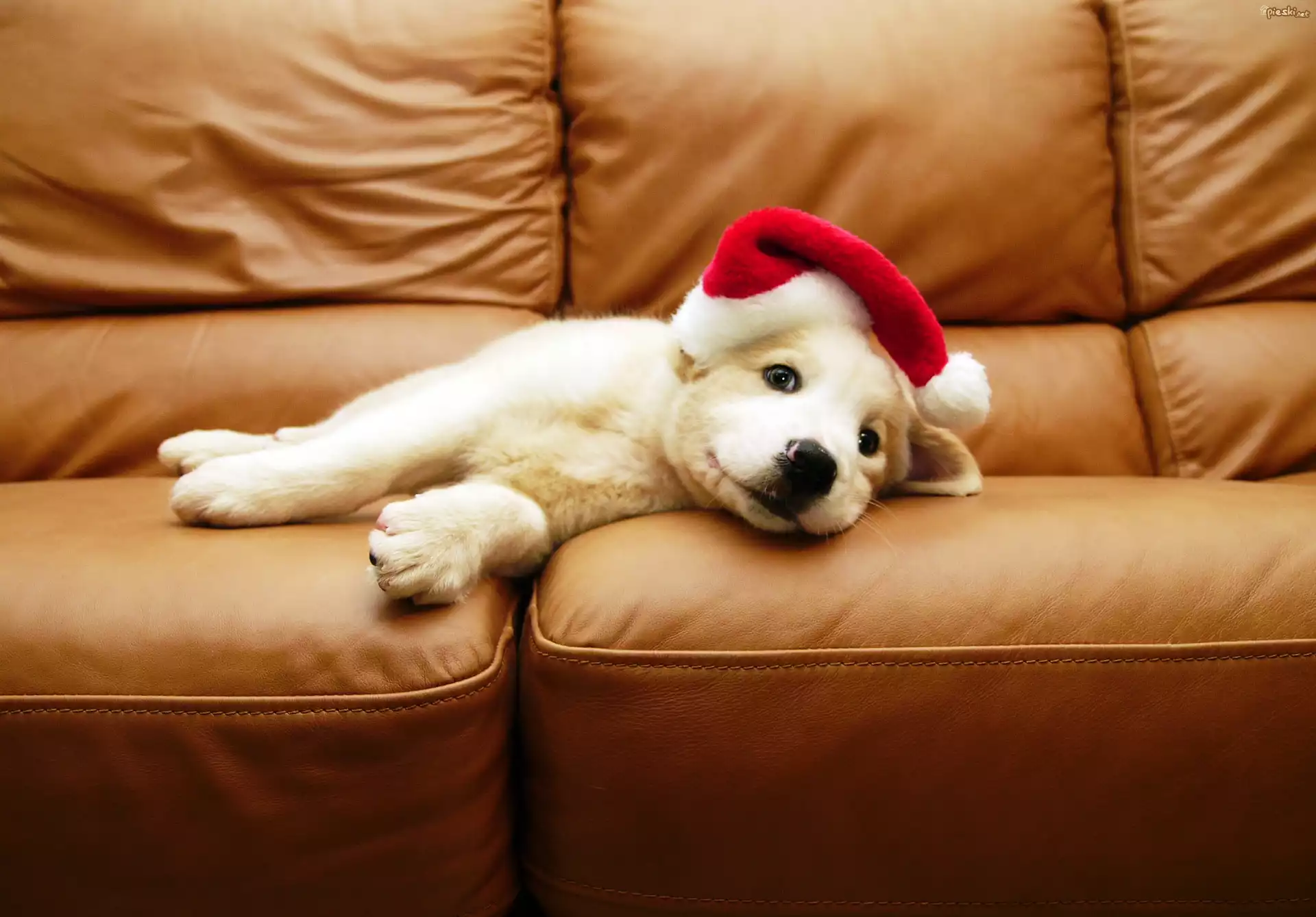 Pies Biały, Szczeniak, Czapka, Kanapa