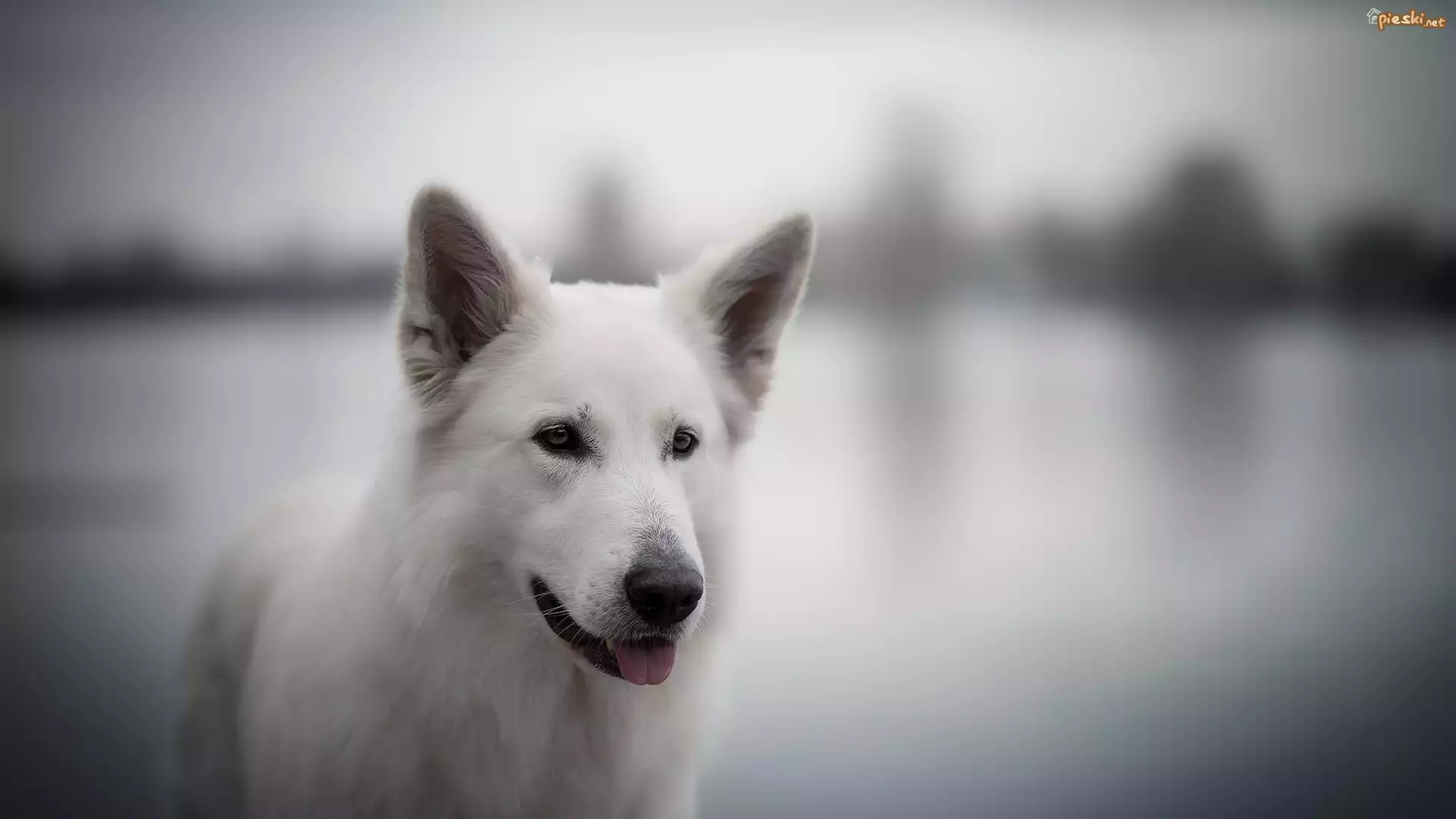 Pies Pies, Biały owczarek szwajcarski, Mordka, Rozmyte, Tło