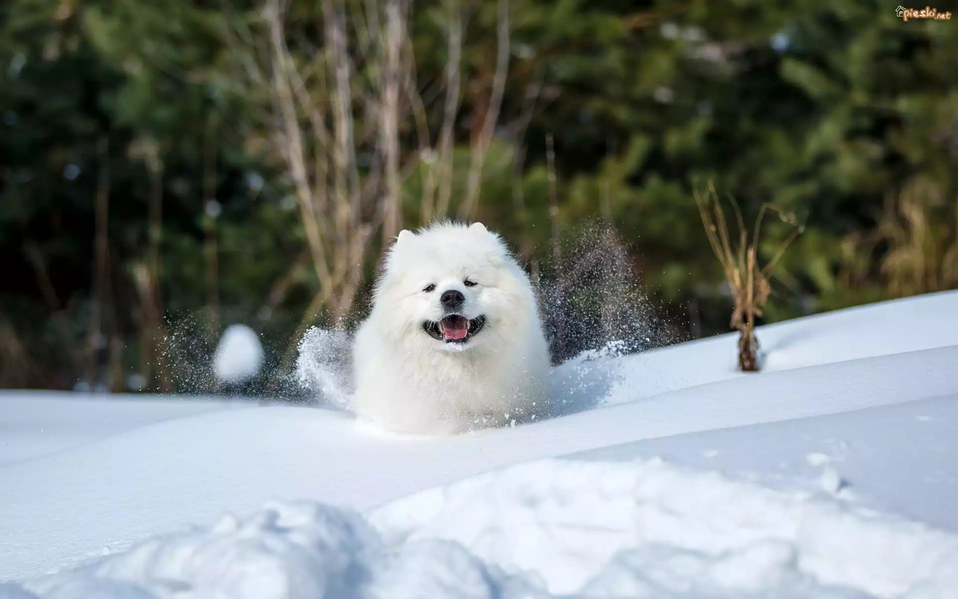 Pies Biały, Pies, Samojed, Śnieg