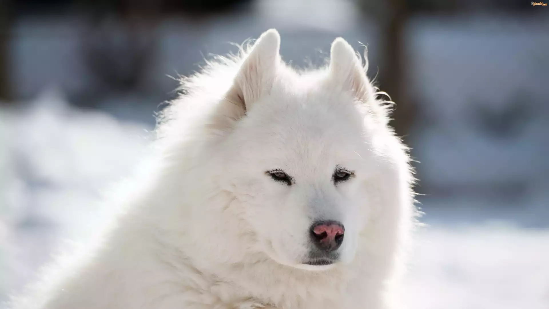 Samojed, Pies, Puszysty, Biały