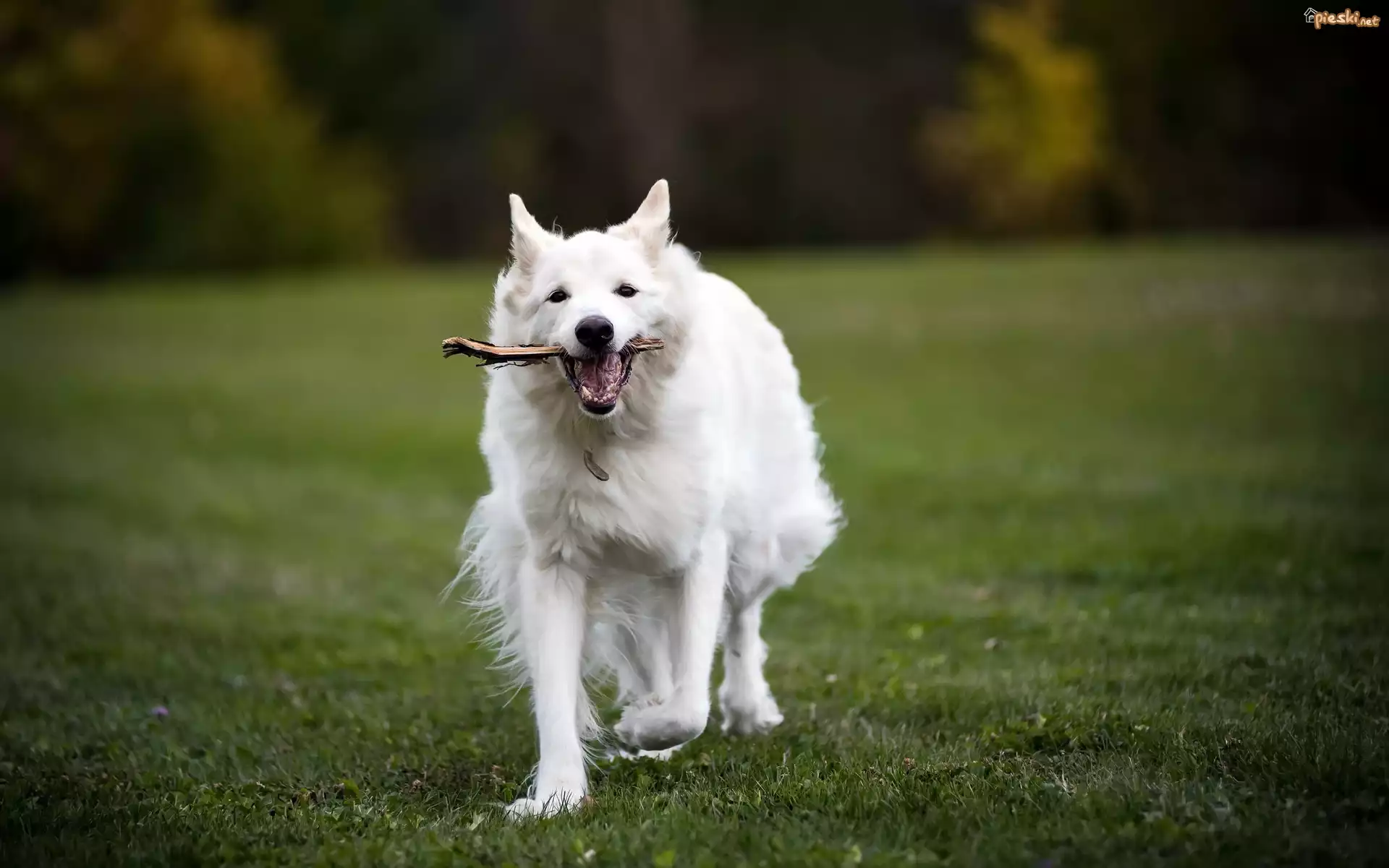 Biały owczarek szwajcarski, Łąka, Trawa, Aport