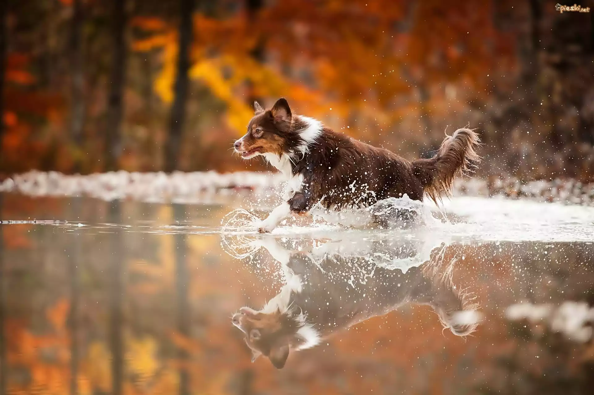 Biegnący, Pies, Woda, Rozbryzg, Odbicie