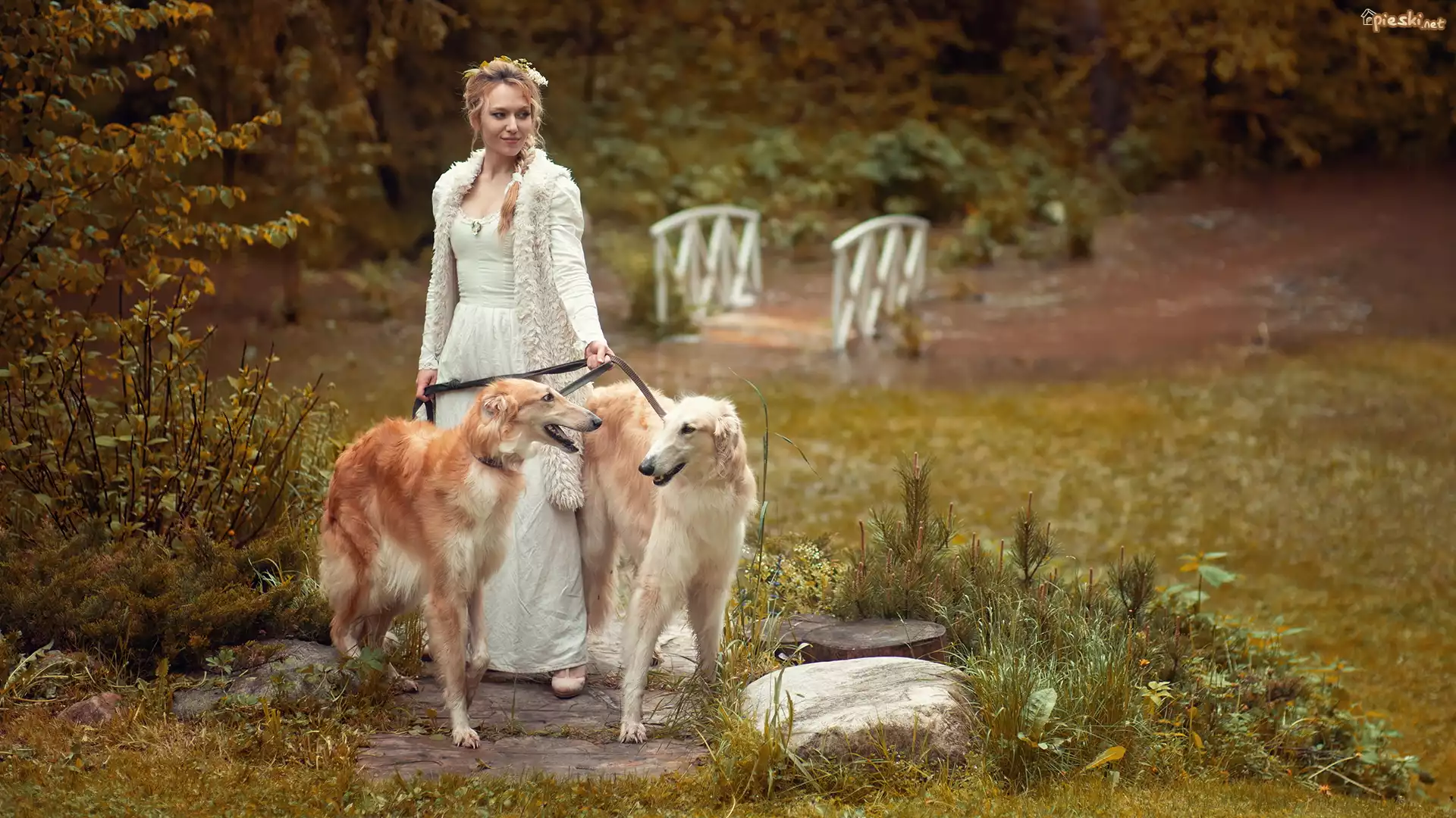 Pies Kobieta, Blondynka, Dwa, Psy, Charty rosyjskie borzoj