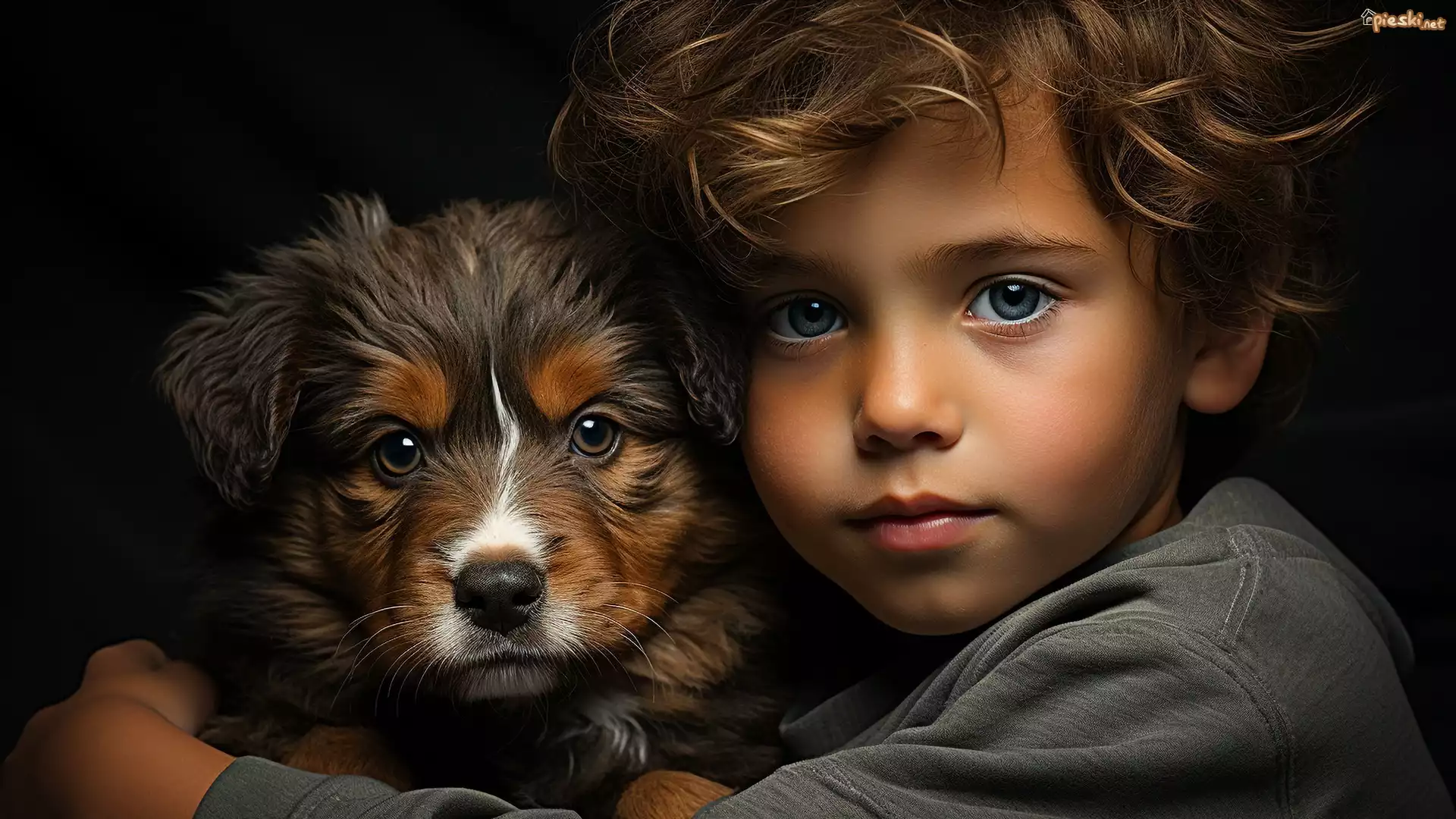 Chłopiec, Bluza, Pies, Szczeniak, Grafika
