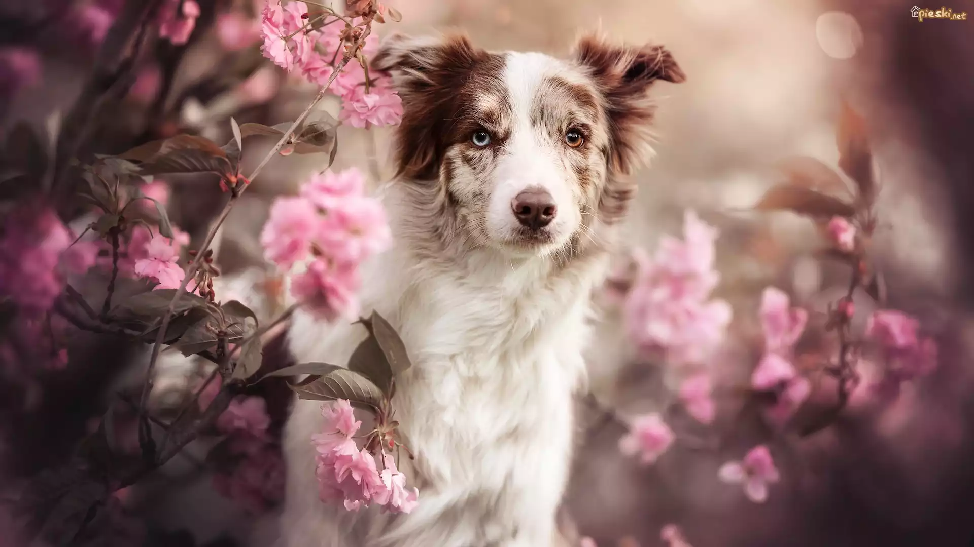 Pies Pies, Border collie, Różowe, Kwiaty