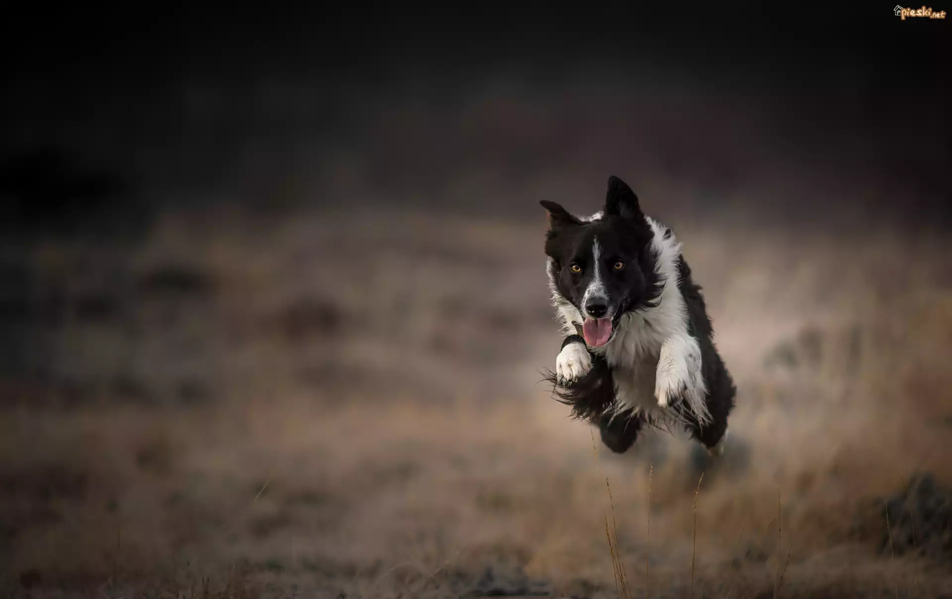 Border collie, Bieg, Skok, Rozmyte, Tło