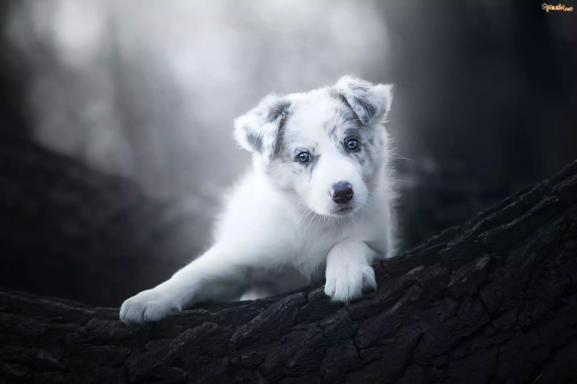 Pies Szczeniak, Border collie, Drzewo, Kora, Rozmyte, Tło