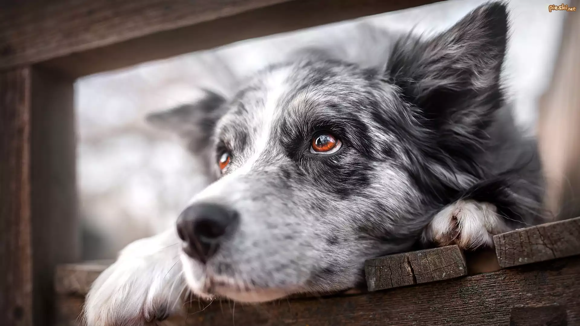 Pies Pies, Border collie, Brązowe, Oczy, Spojrzenie, Deski