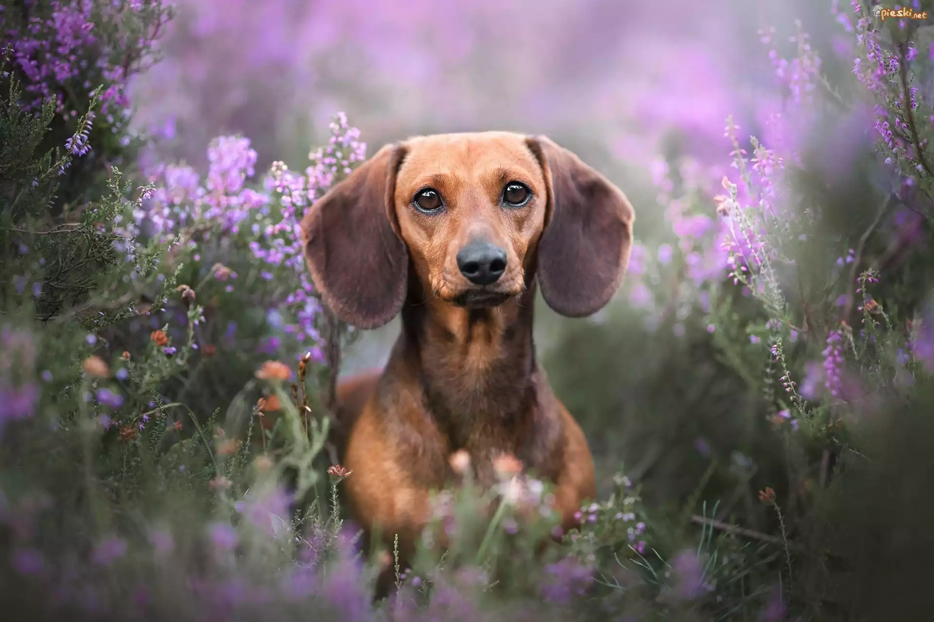Pies Brązowy, Pies, Jamnik, Wrzosy
