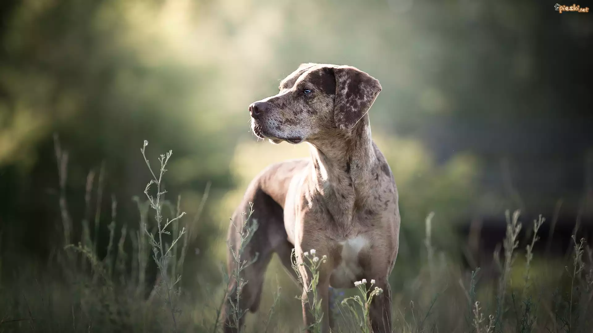 Pies, Catahoula leopard dog, Łąka, Rosliny, Rozmyte, Tło