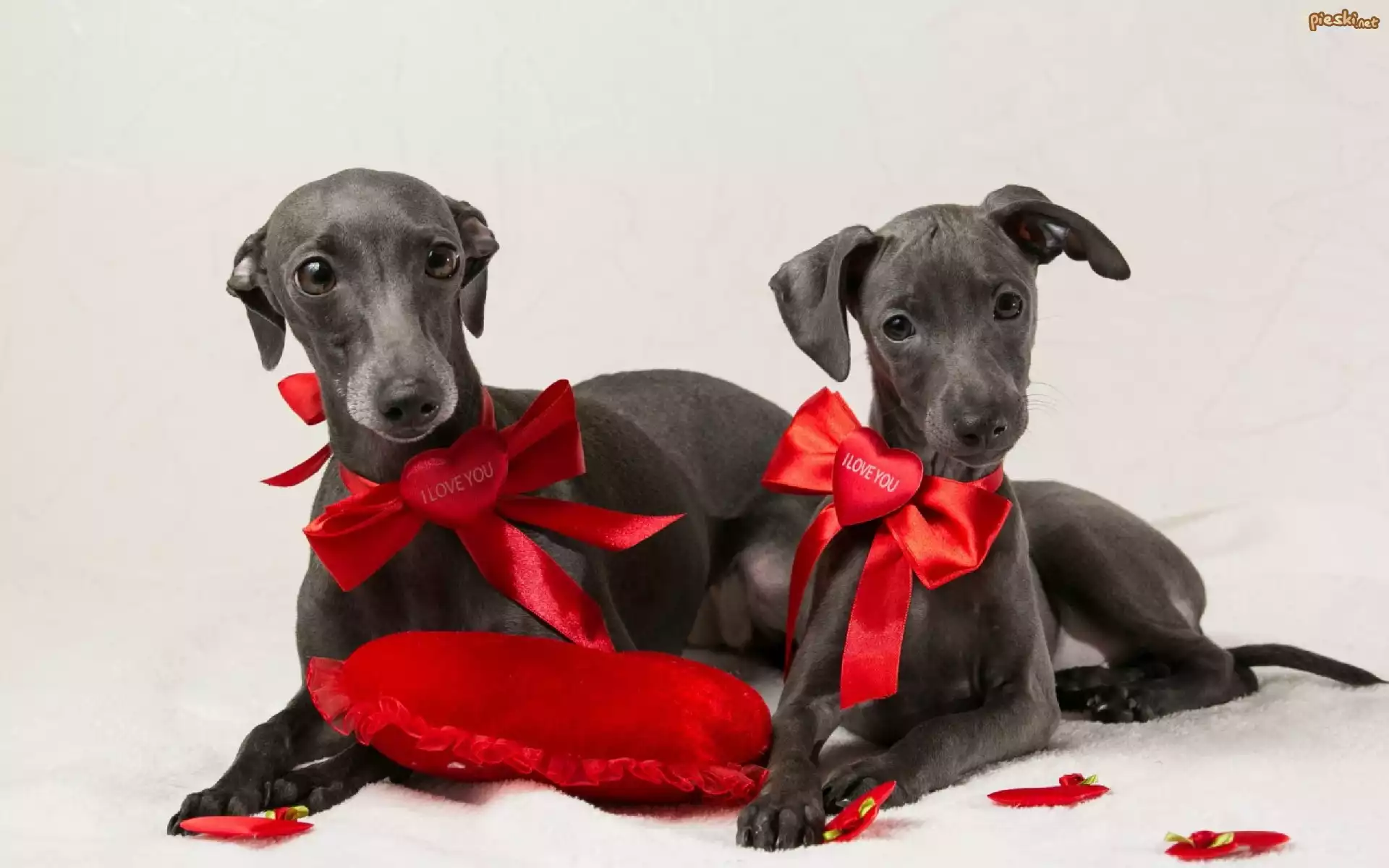 Charcik, Włoski, Czerwona, Kokardka Pies, Charcik włoski, Uszy, Mordka Dwa, Psy, Charciki włoskie, Biały, Czarny