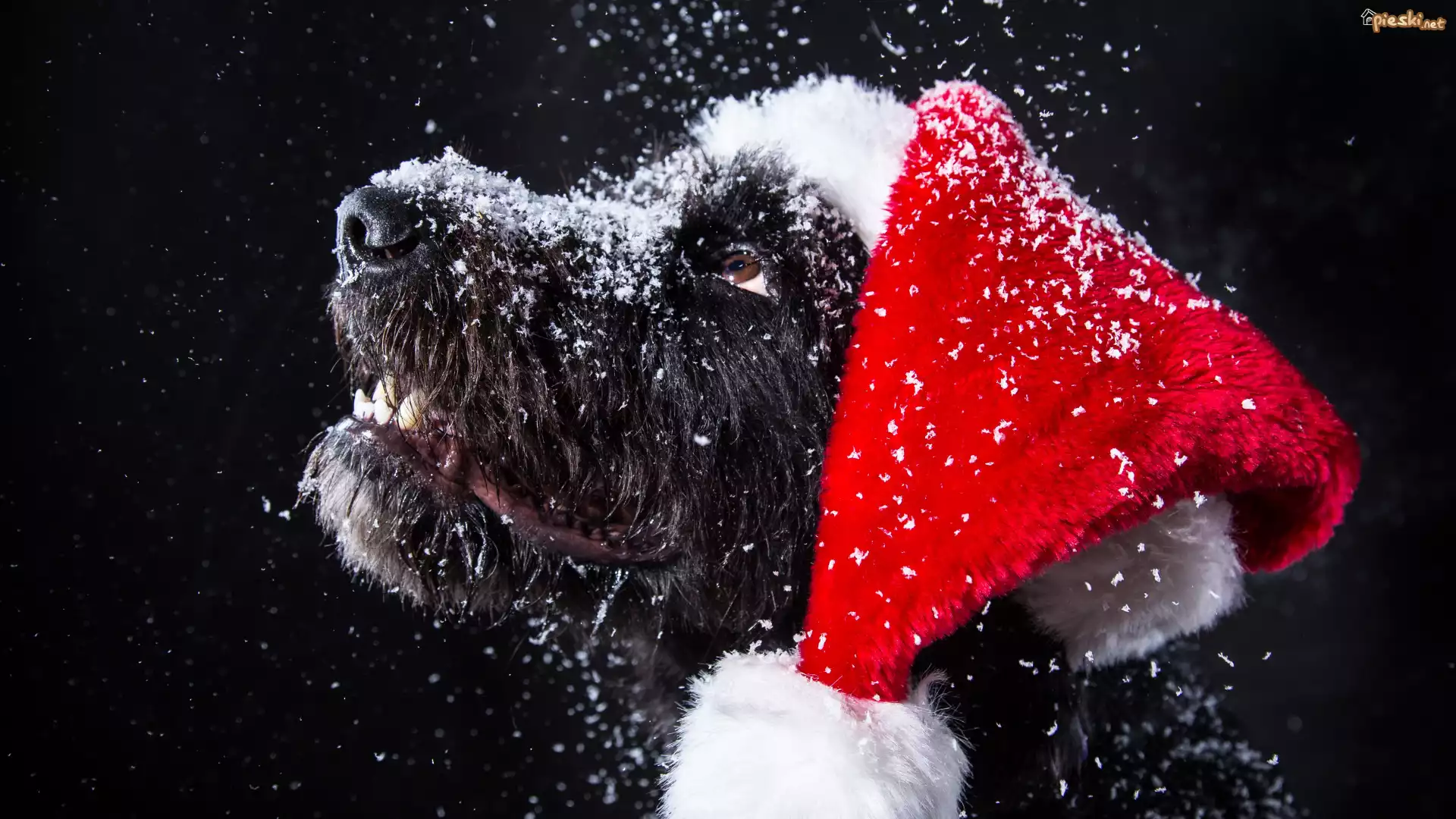 Śnieg, Czarny, Pies, Czapka, Mikołaja