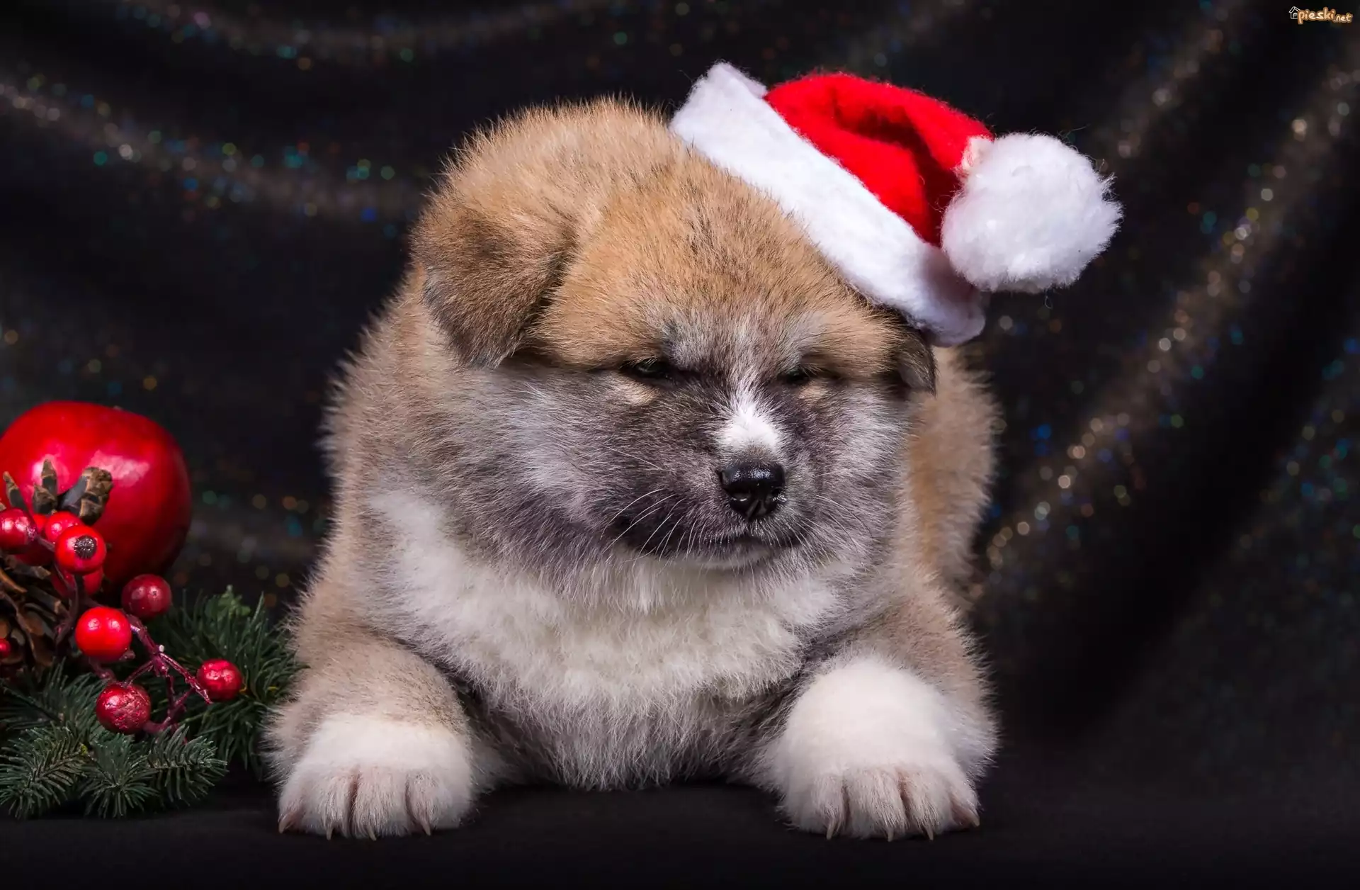 Piesek, Akita, Czapka, Mikołaja