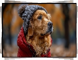 Pies Pies, Czerwona, Kurtka, Czapka, Golden retriever