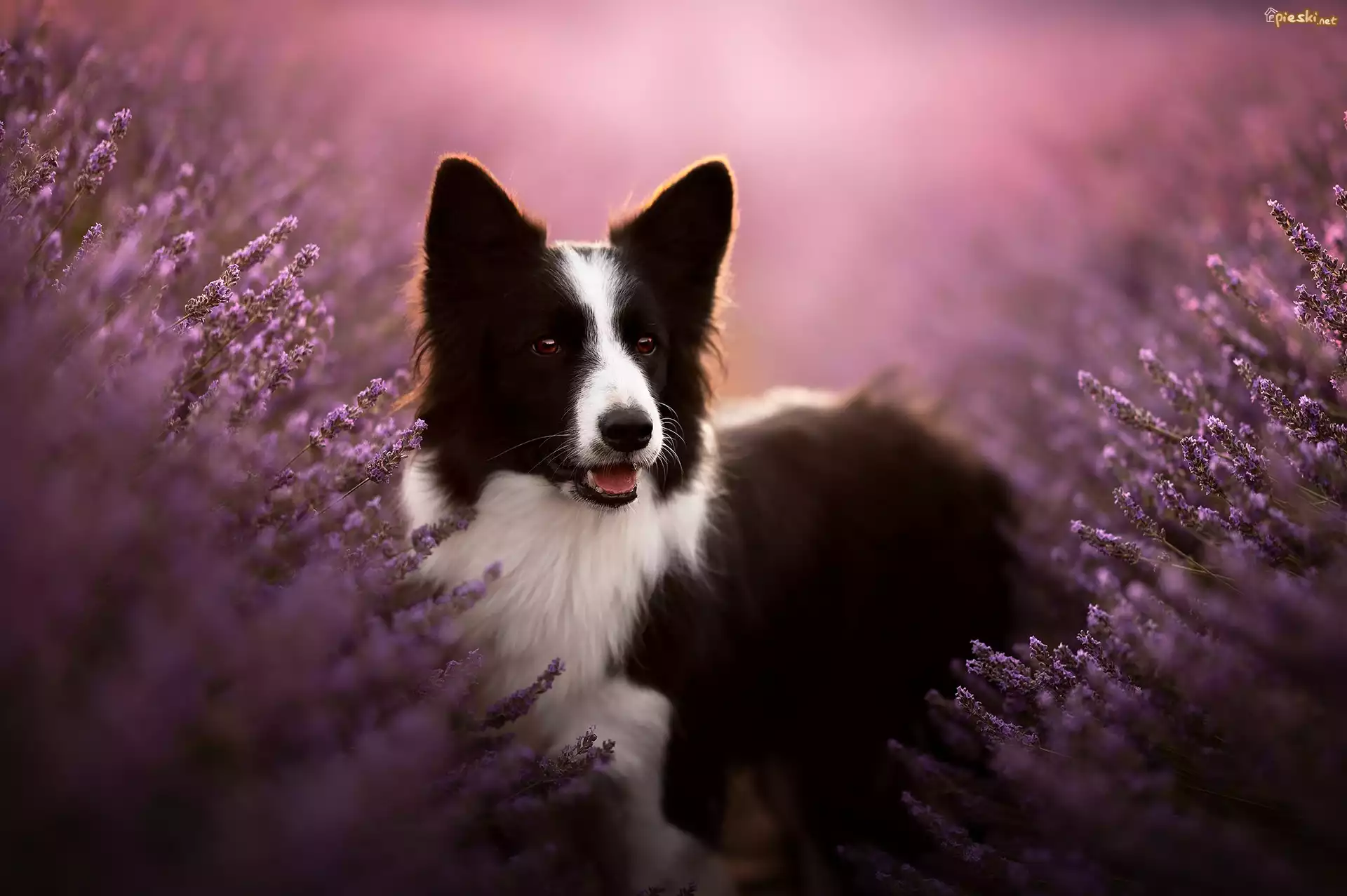 Pies Czarno-biały, Pies, Border collie, Wrzosy