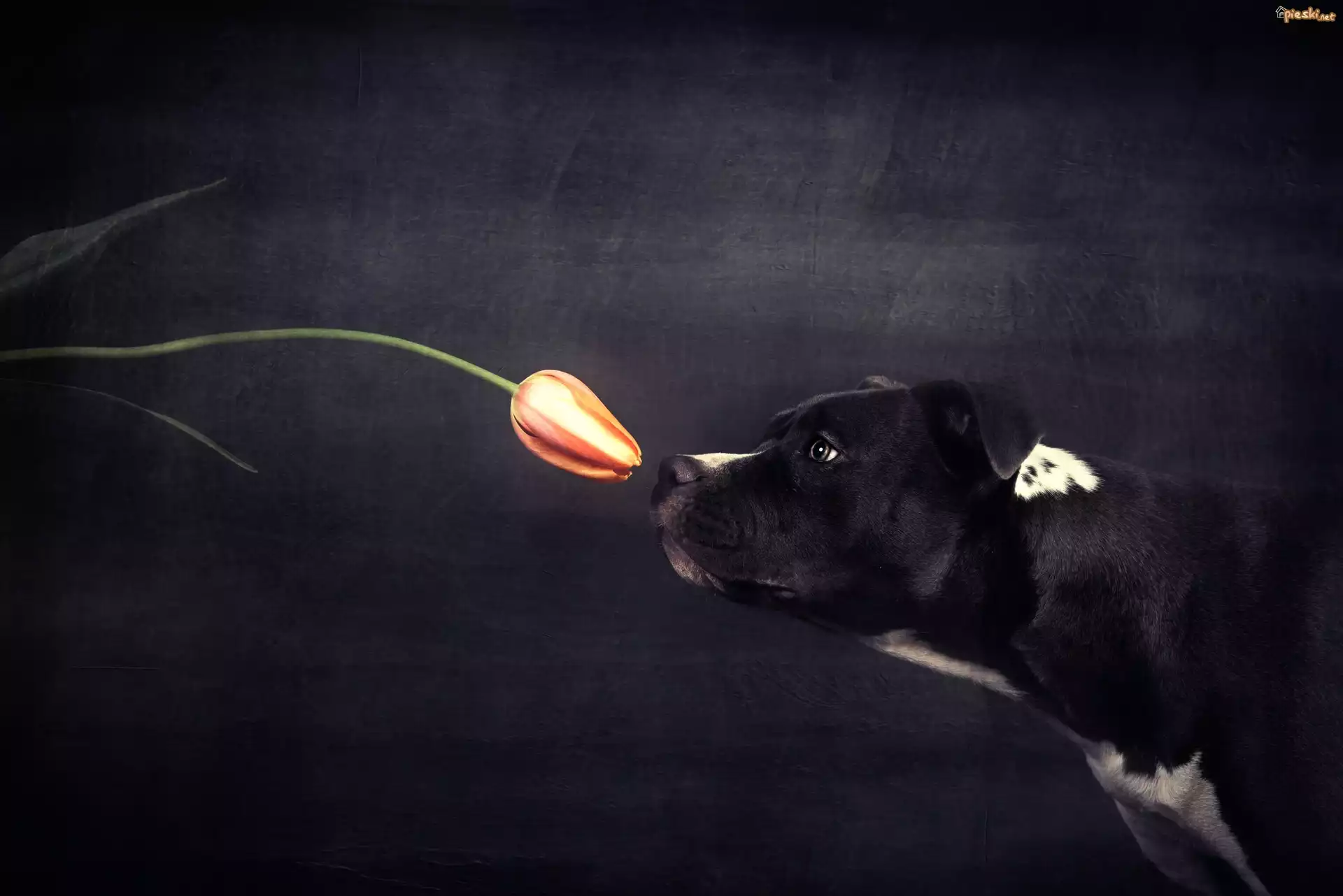 Czarno-biały, Pies, Tulipan