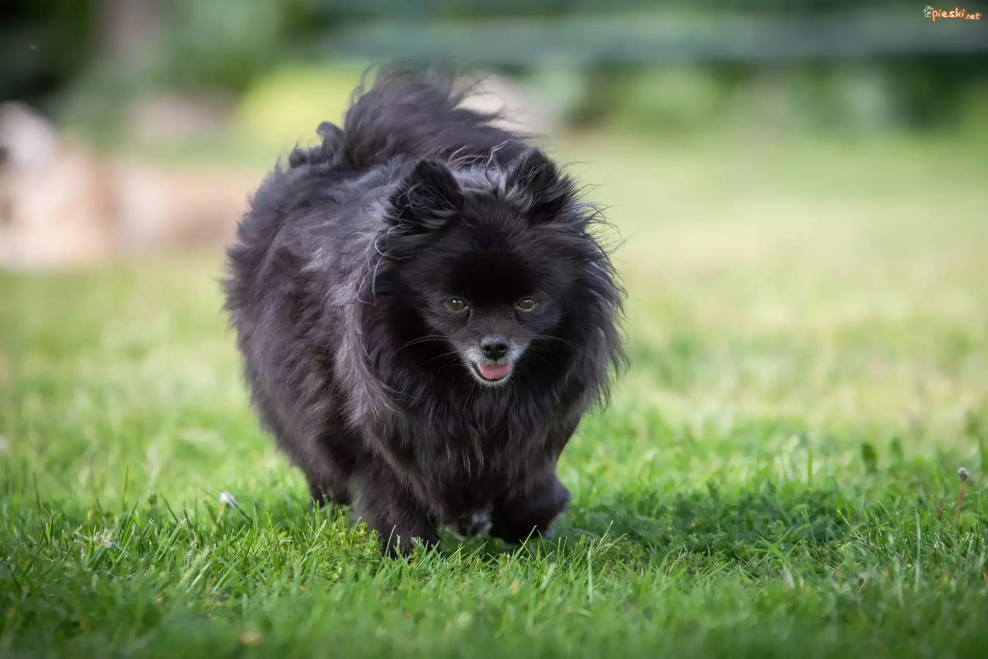 Pies Czarny, Pies, Szpic niemiecki, Trawa