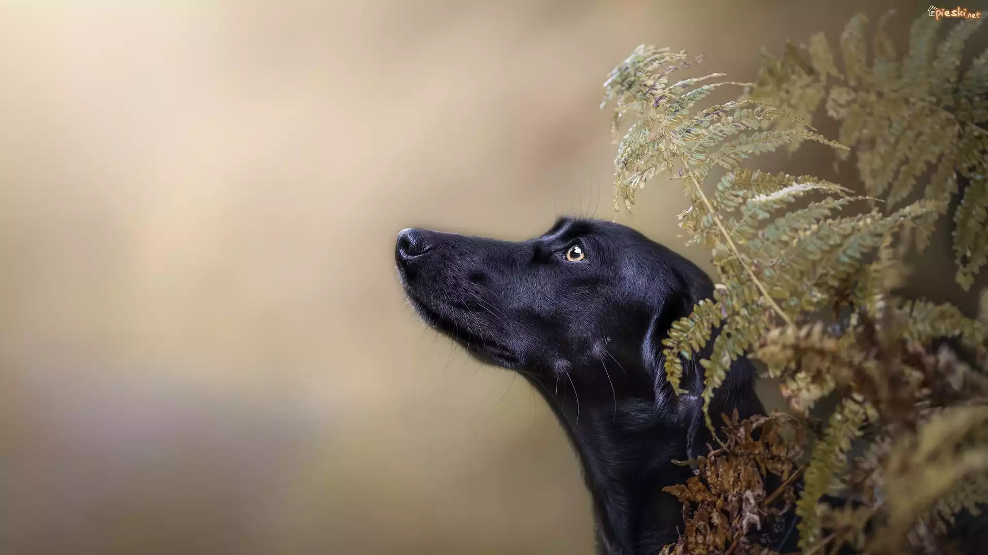 Pies Czarny, Pies, Mordka, Paprocie, Rozmyte, Tło