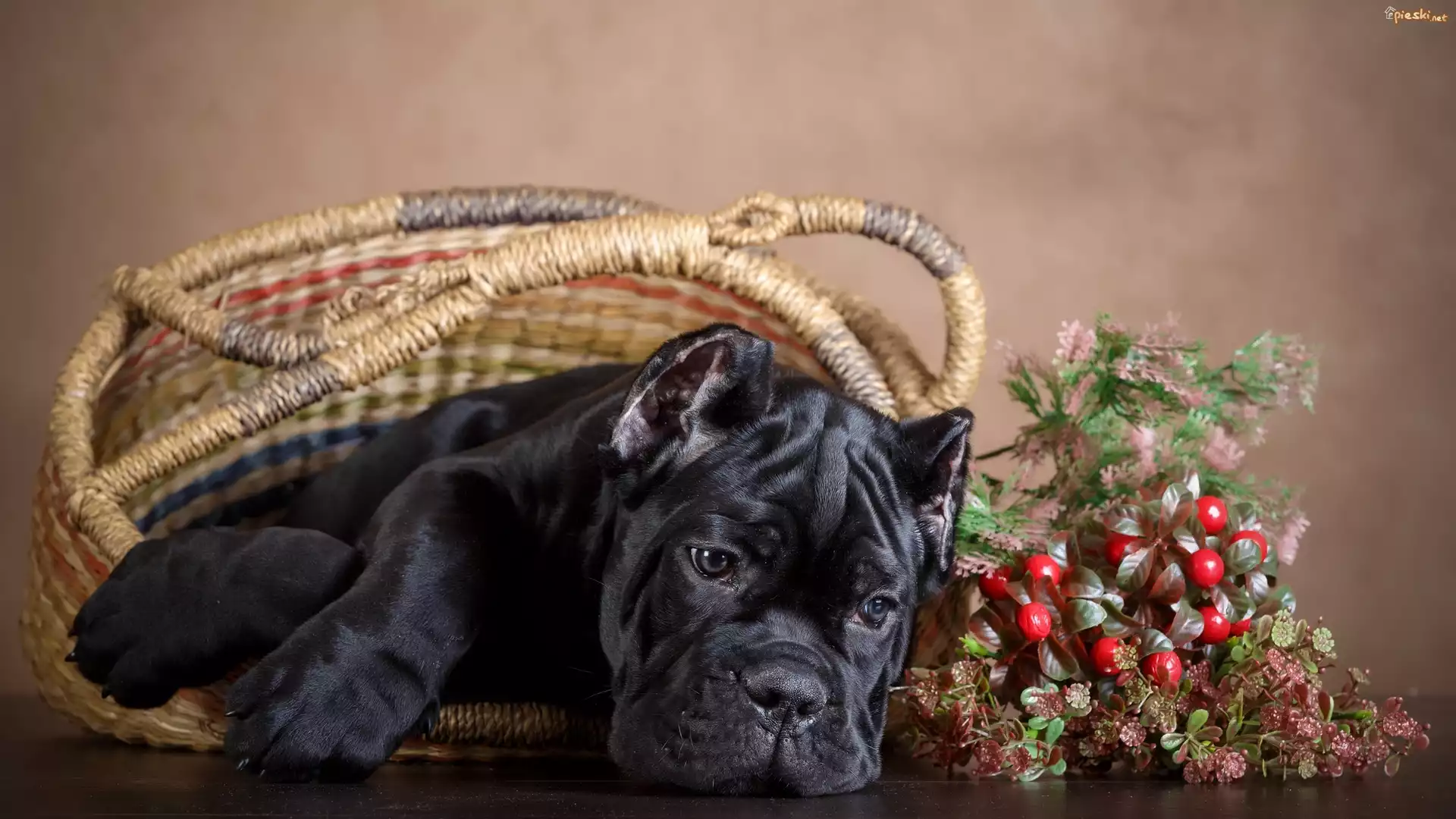 Pies Czarny, Pies, Cane Corso, Szczeniak, Koszyk