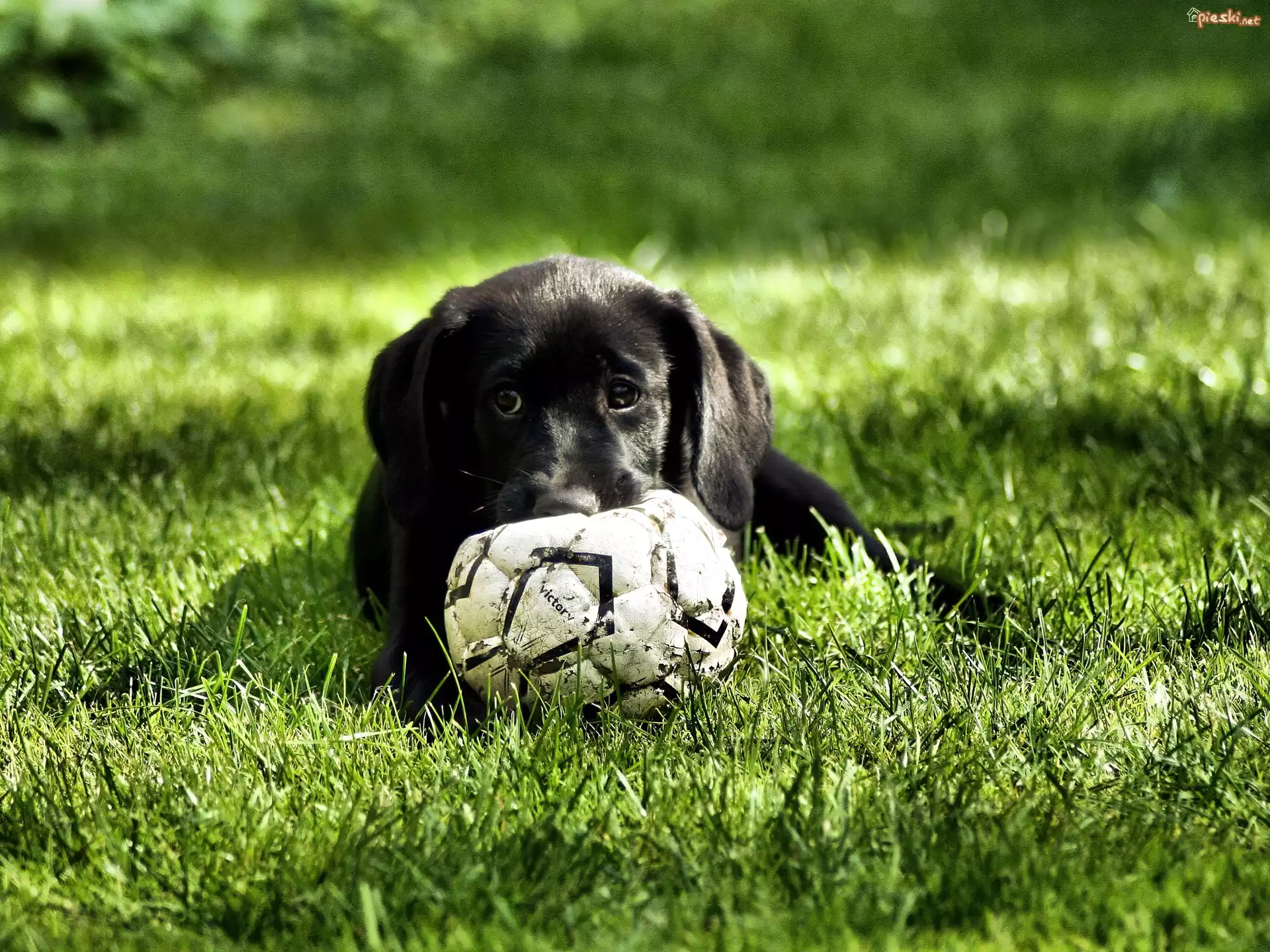 Pies Czarny, Labrador Retriever, Szczeniak, Piłka