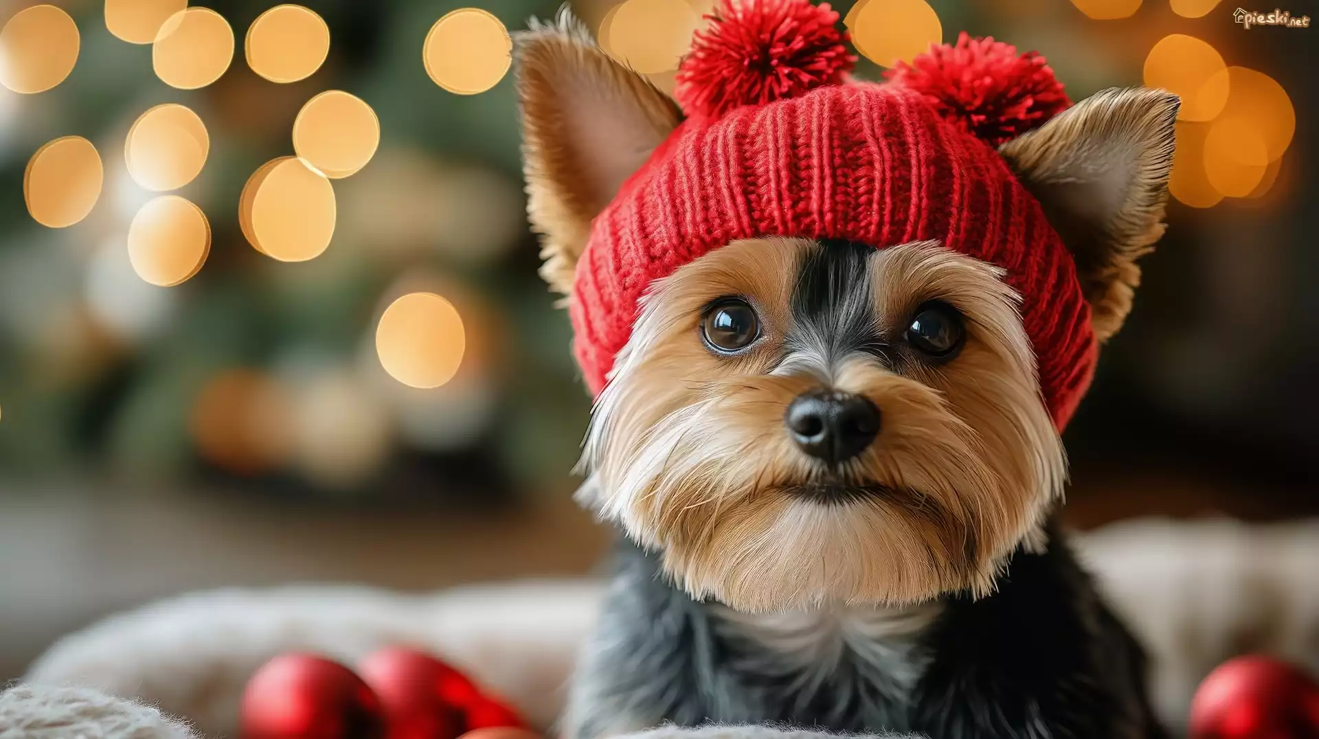 Pies Pies, Yorkshire terrier, Czerwona, Czapka, AI