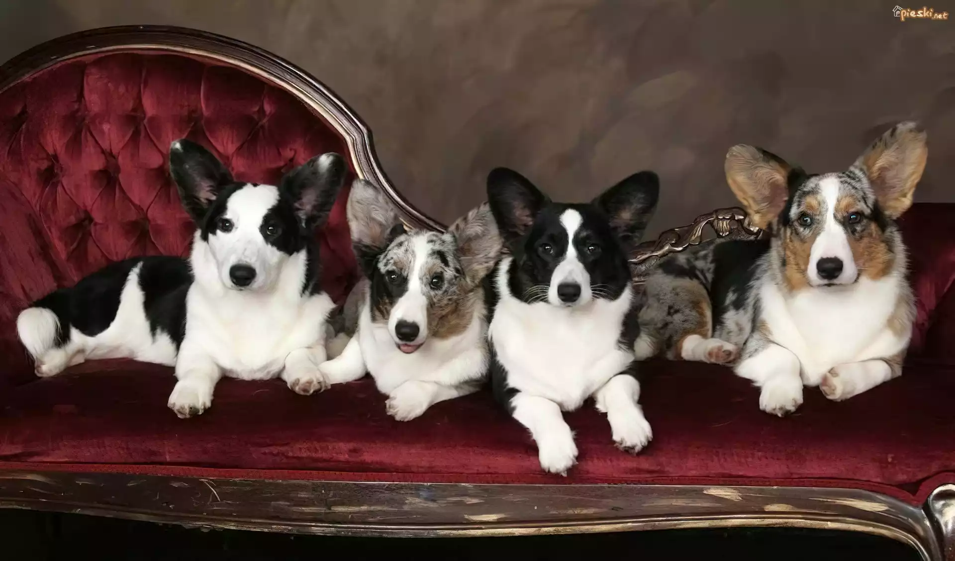 cztery, psy, Welsh corgi cardigan