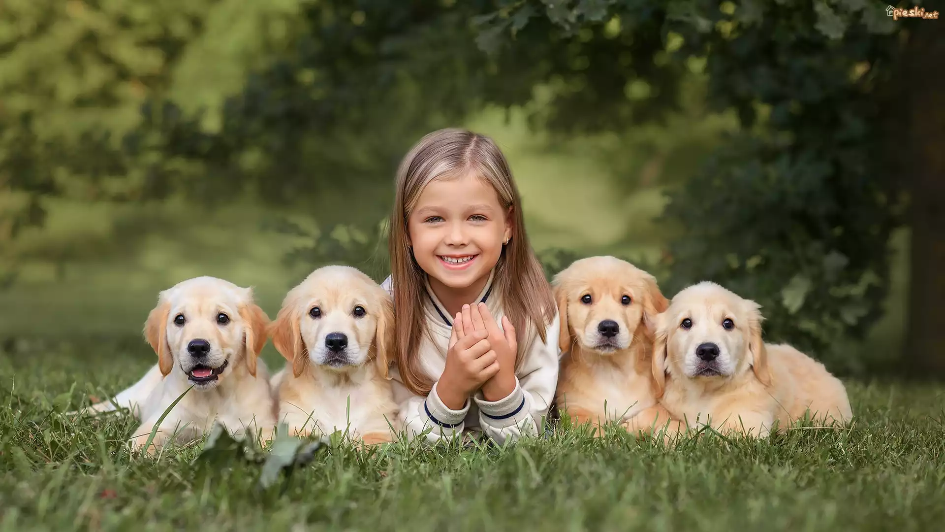 Dziewczynka, Cztery, Szczeniaki, Golden retrievery
