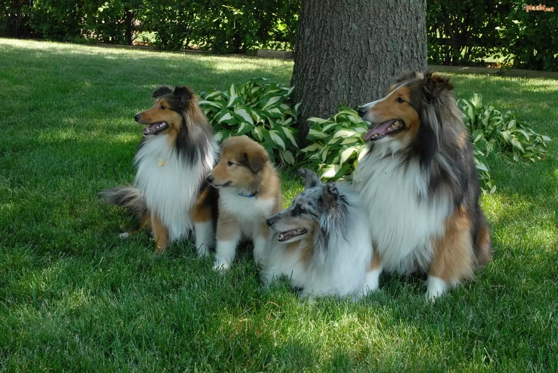 Pies Cztery, Owczarki, Szkockie, Trawa