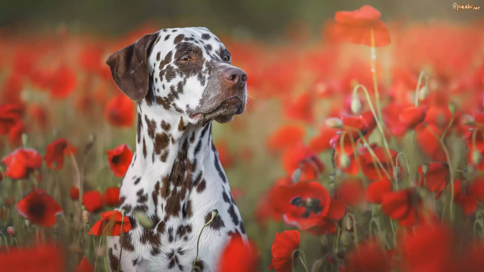 Pies Pies, Dalmatyńczyk, Kwiaty, Czerwone, Maki