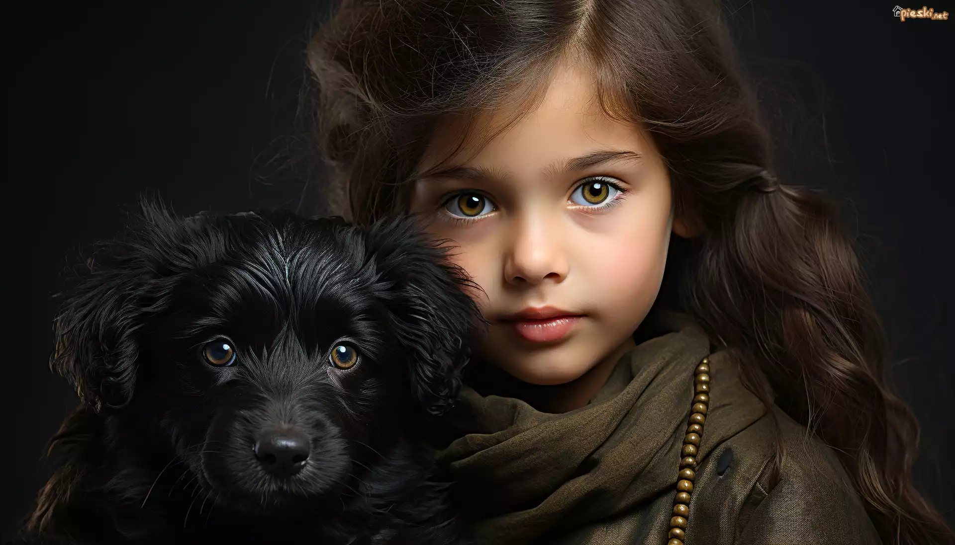 Dziewczynka, Długie, Włosy, Czarny, Pies