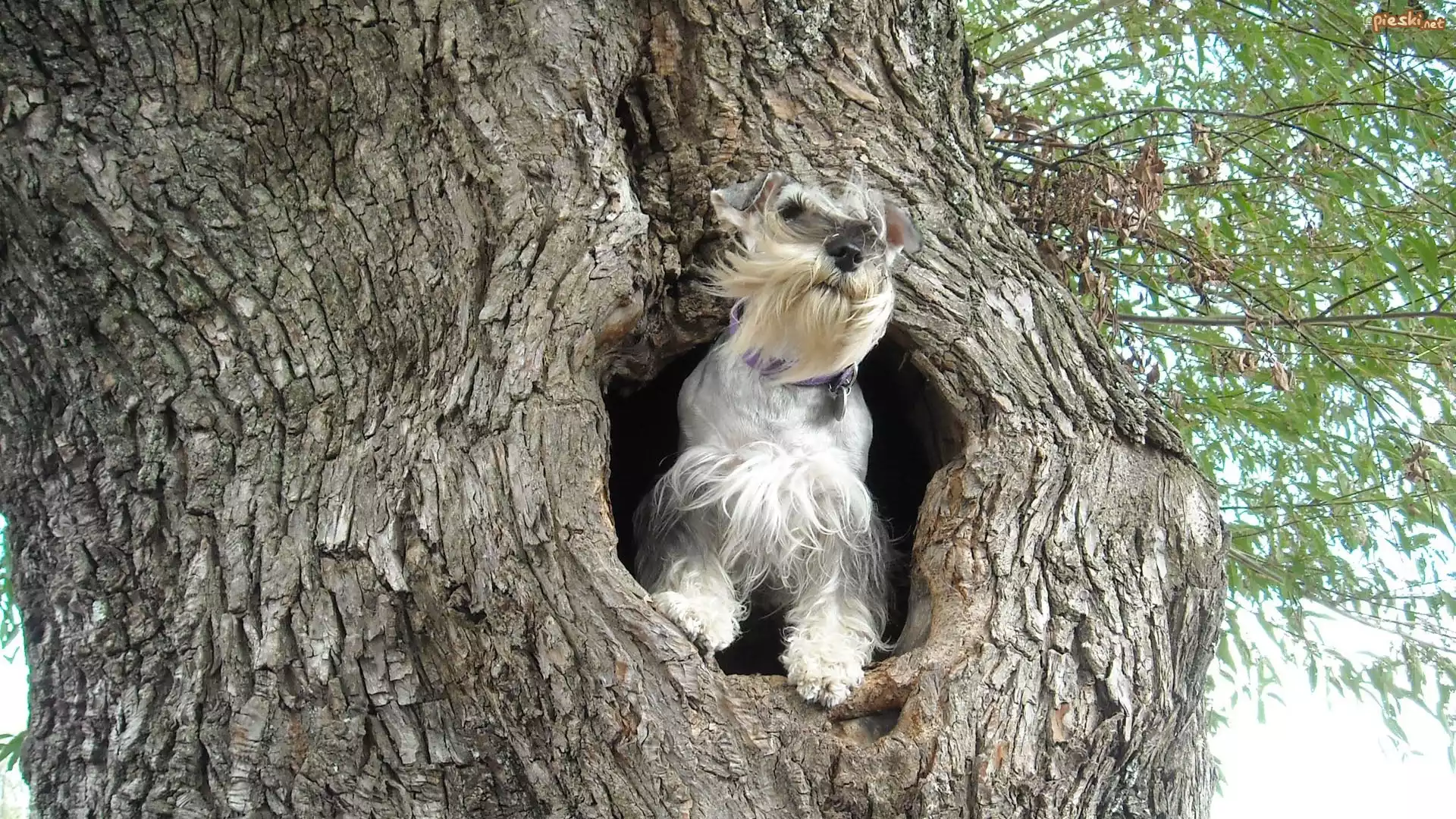 Pies Pies, Drzewo, Dziupla, Sznaucer miniaturowy