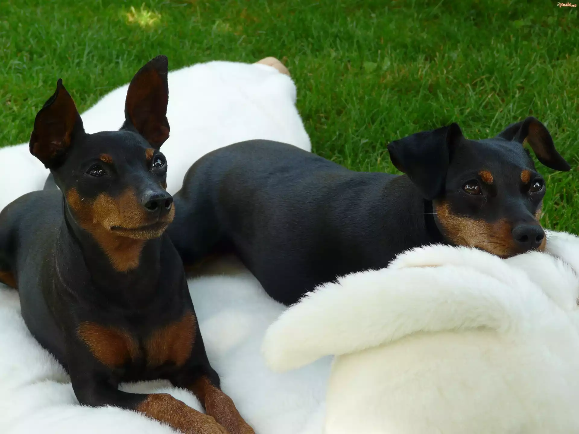 dwa, Pinczery miniaturowe, biały, koc