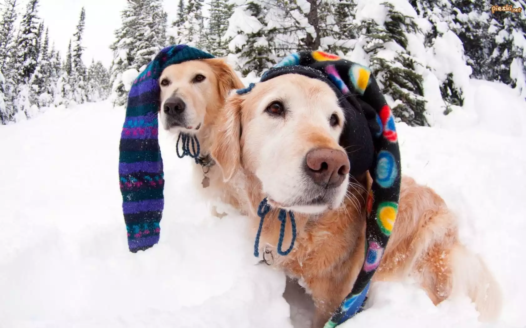 Pies Dwa, Goldeny, Kolorowe, Czapki, Zima