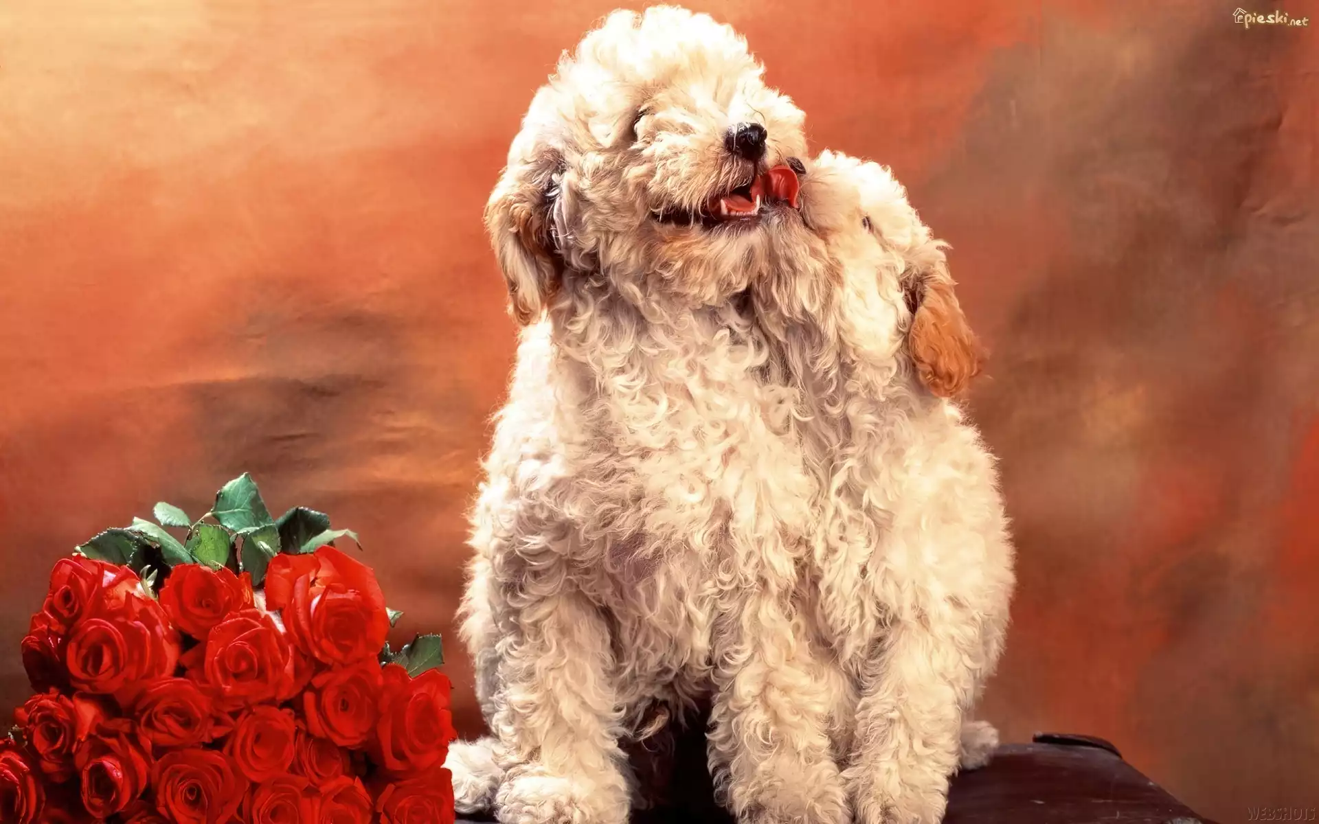 Pies Szczeniaki, Pudelki, Czerwone, Róże