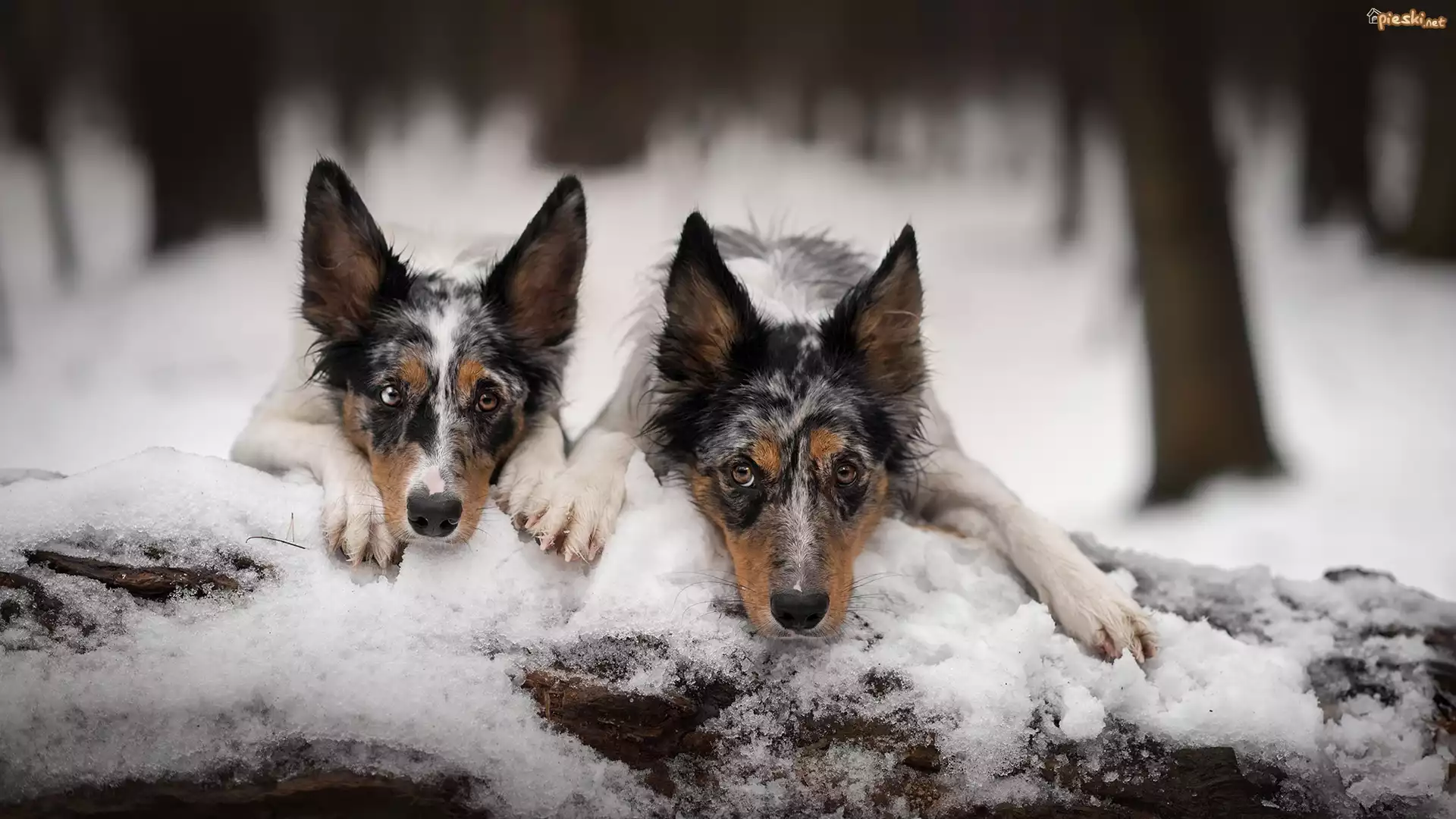 Pies Dwa, Psy, Border collie, Drzewo, Śnieg
