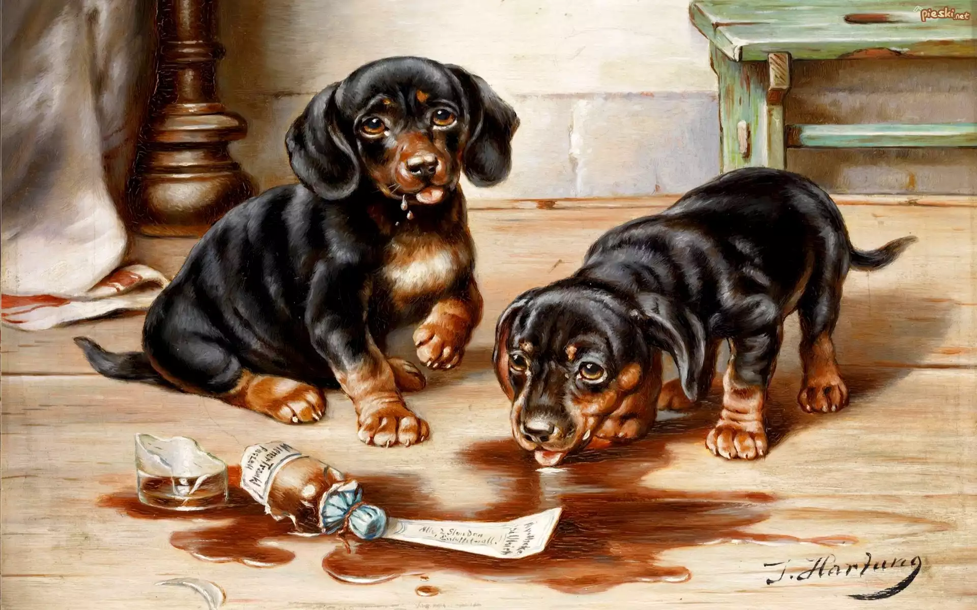 Pies Dwa, Szczeniaki, Jamniki, Obraz