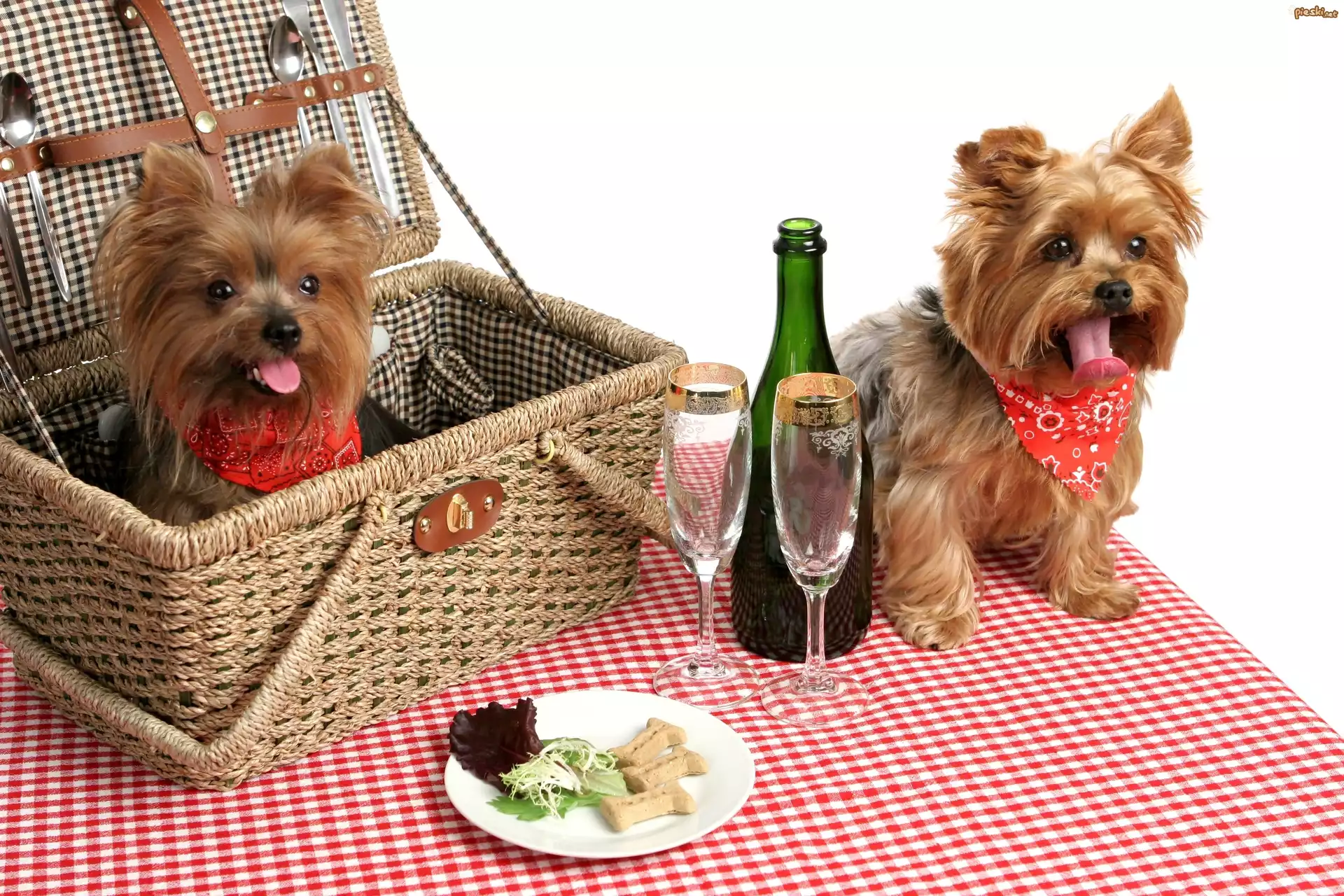 Pies Dwa, Pieski, Yorkshire Terrier, Kosz, Piknik