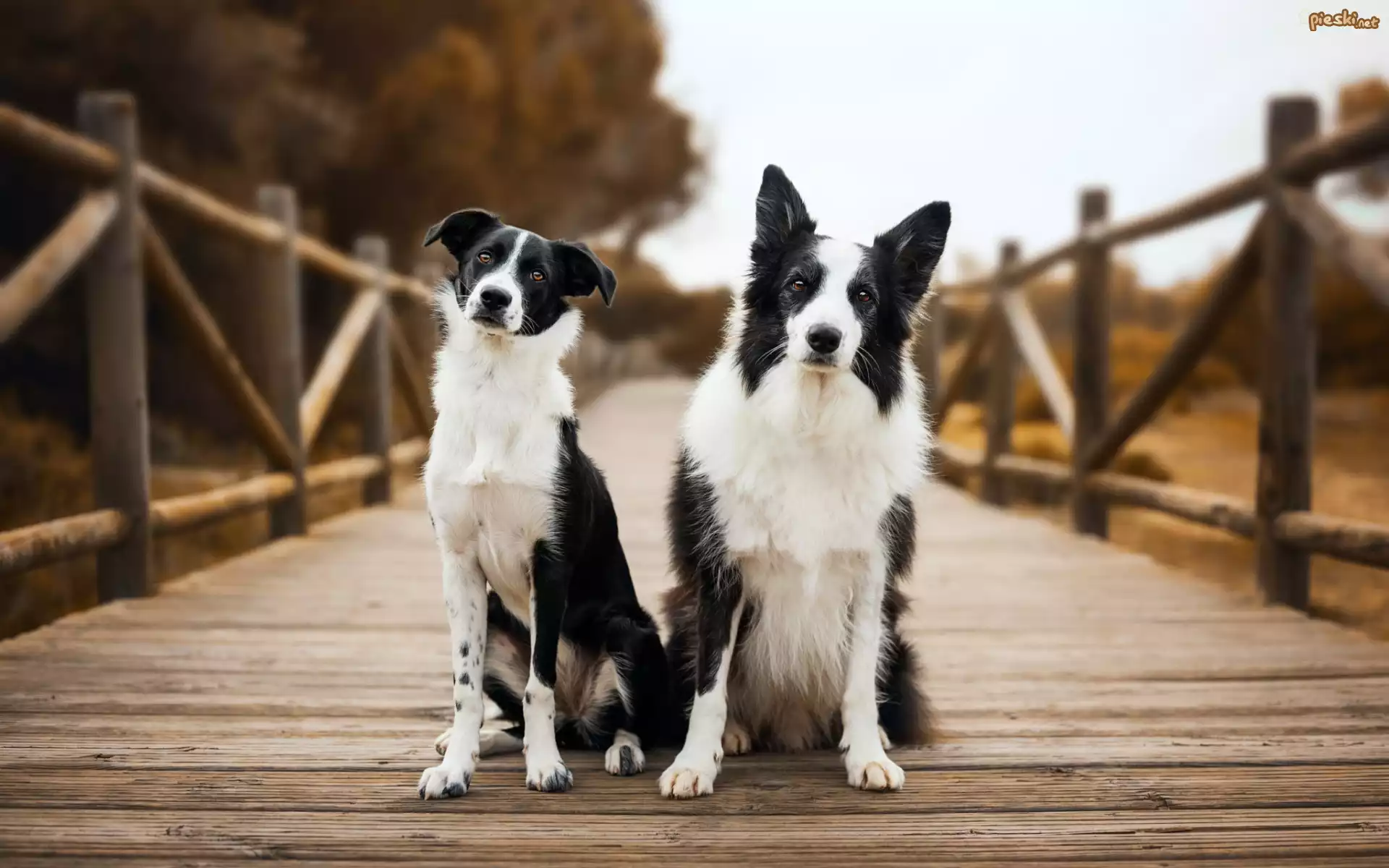 Pies Dwa, Psy, Biało-czarne, Border collie, Krótkowłosy, Długowłosy, Most