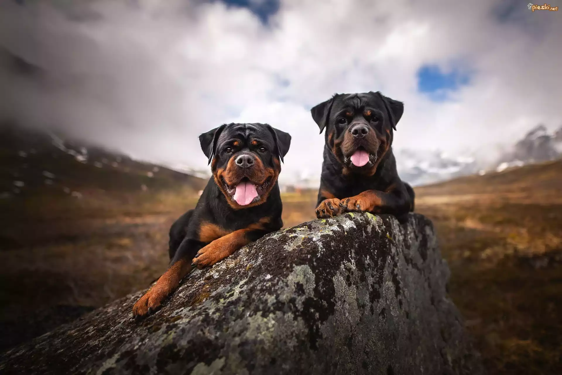 Pies Dwa, Psy, Rottweilery, Kamień